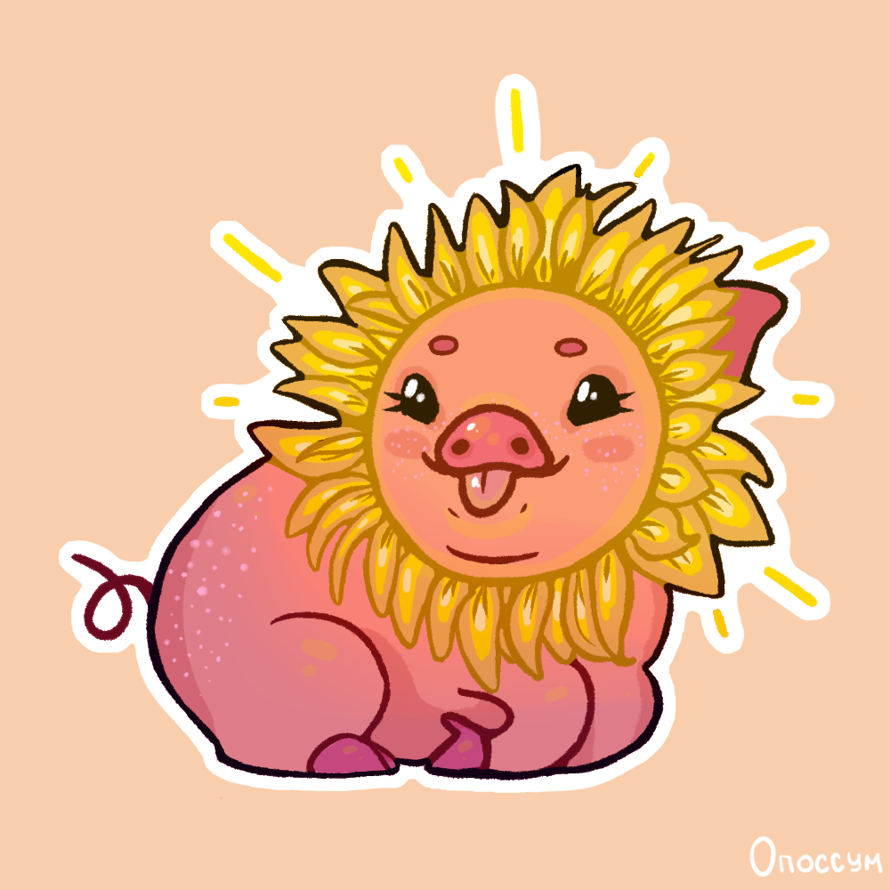 Маленькая весёлая свинка с солнышком-подсолнухом. Она - настоящий закат. Где-то уже даже проглядывают звёзды.