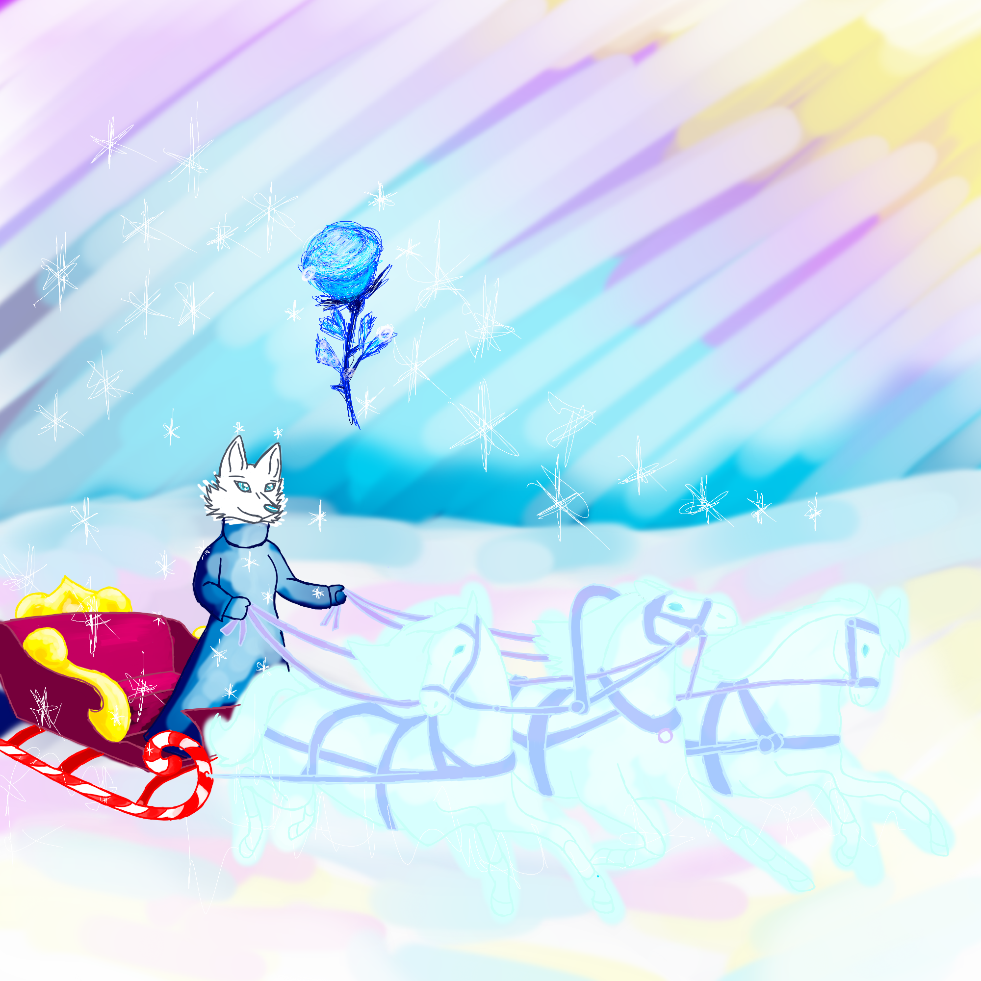 На новогодних санках мчится