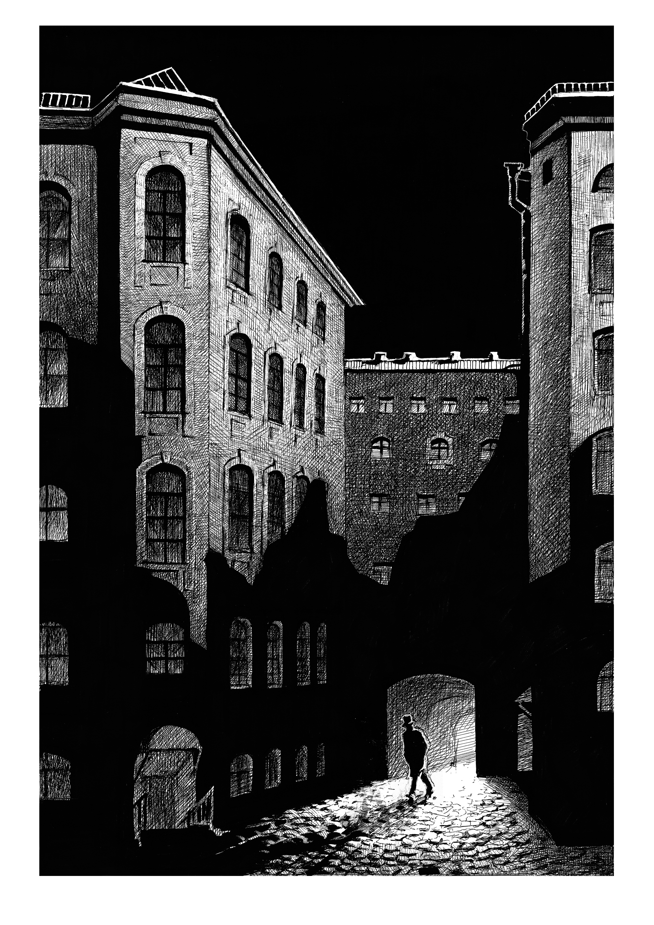 Изображены ночной Петербург и главный персонаж романа Родион Раскольников.