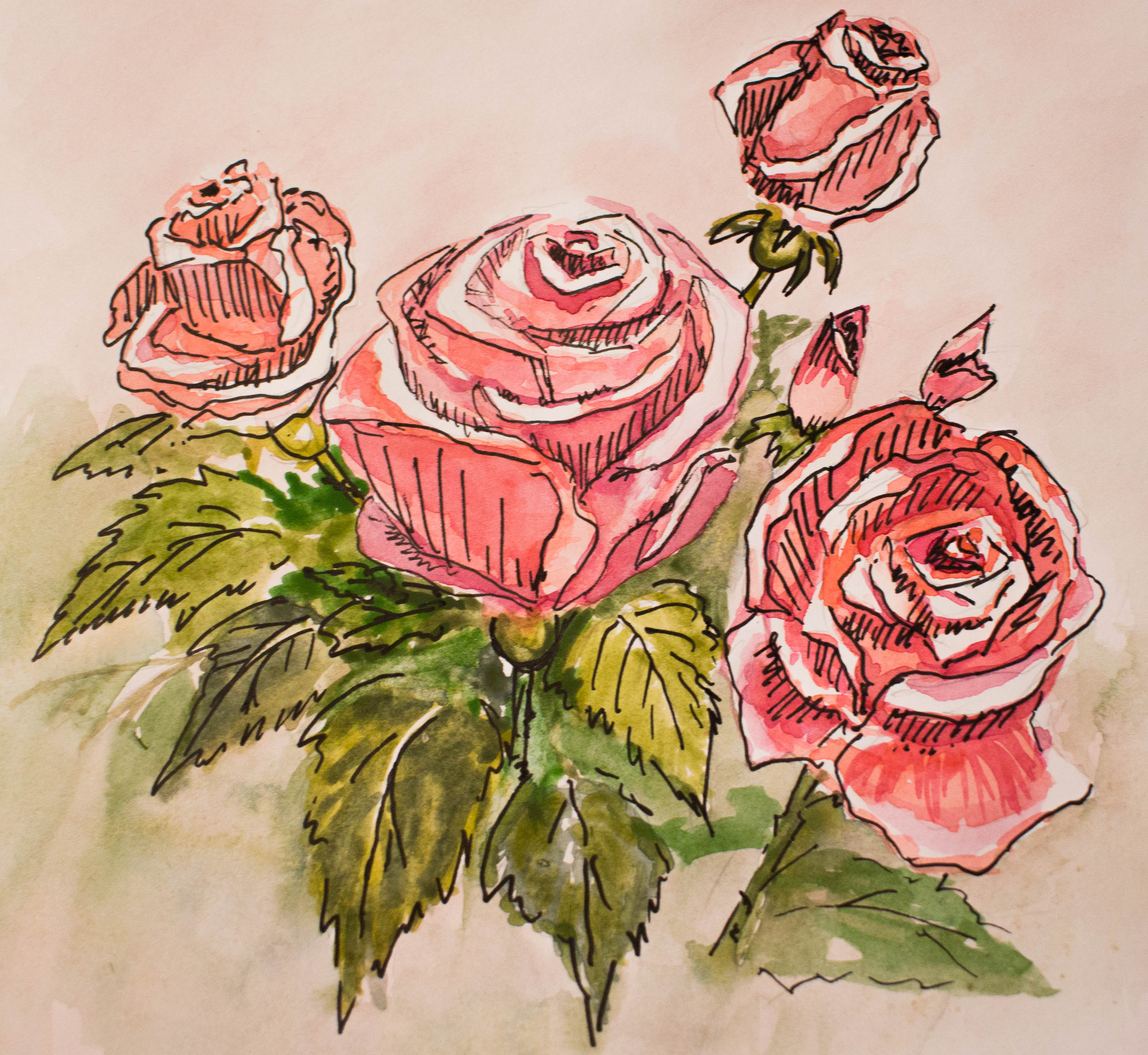 Несколько роз выполненные акварелью и гелевой ручкой.