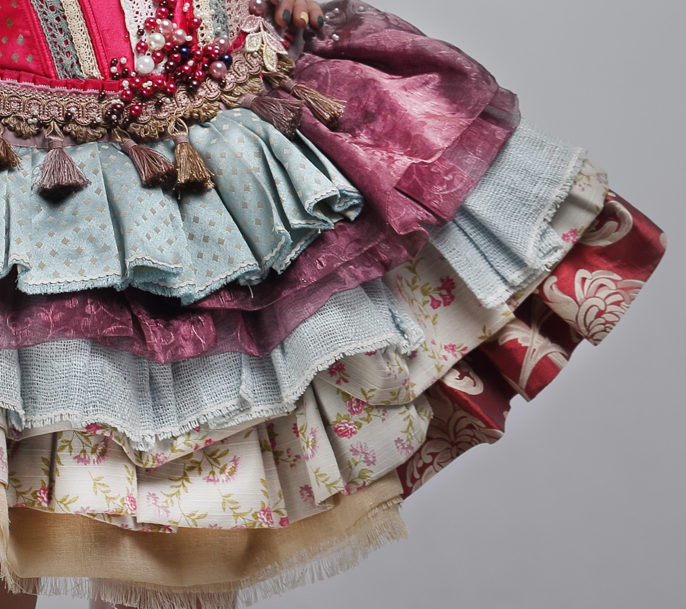 Авторская коллекция костюмов, созданная для участия в мировом конкурсе WOW. Используются различной текстуры и фактуры портьерные ткани из разных стран мира. В более мелком убранстве платья применяется вышивка бисером, бусинами, перьями павлина и многими другими декоративными деталями.