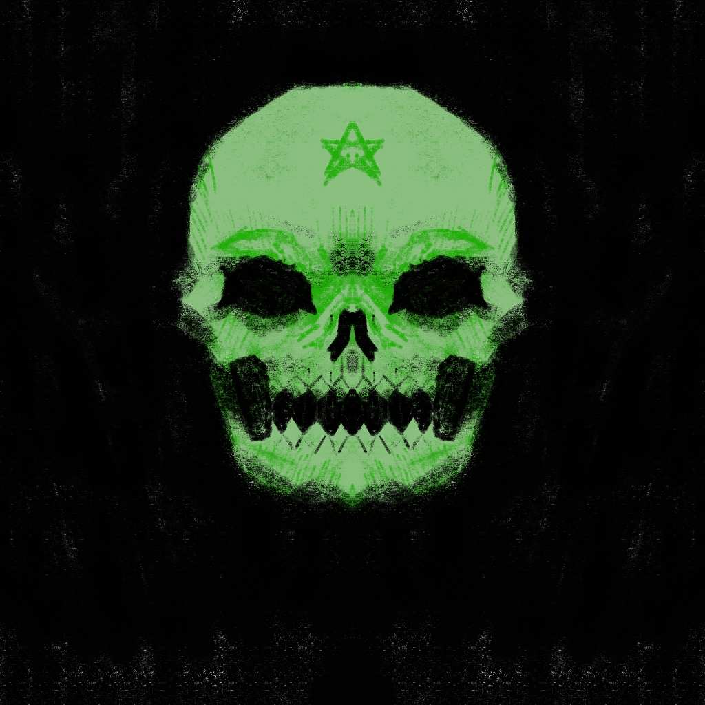 Зелёный череп на чёрном фоне