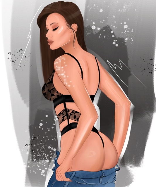 Fashion illustration девушка одевает джинсы