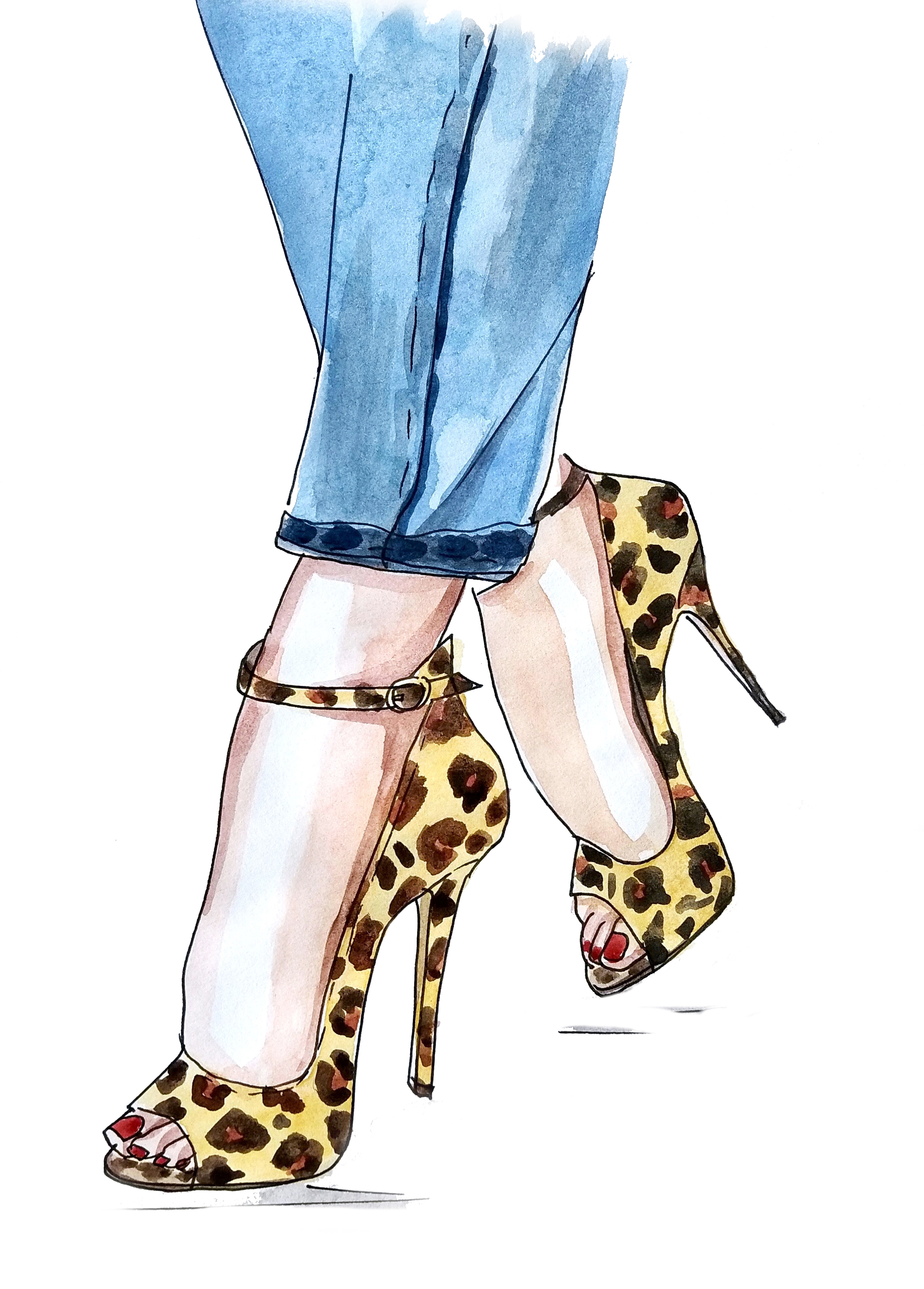 Иллюстрация акварелью леопардовых туфель