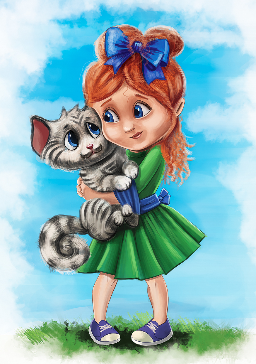 девочка с кошкой
