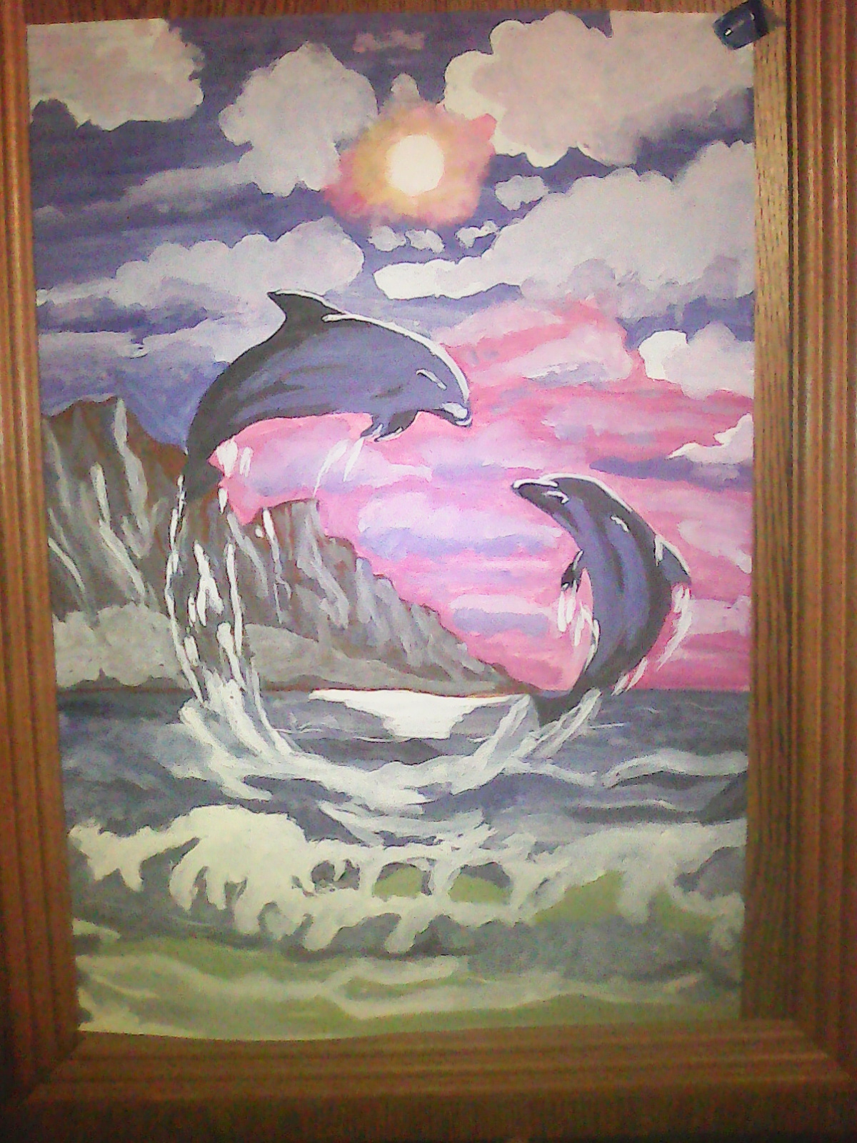 Дельфины написаны гуашью