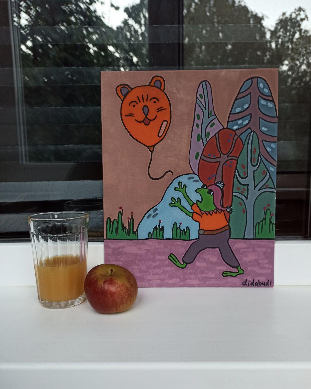 Работа выполнена в стиле примитивизм, холст на картоне 24 на 30 сантиметра.