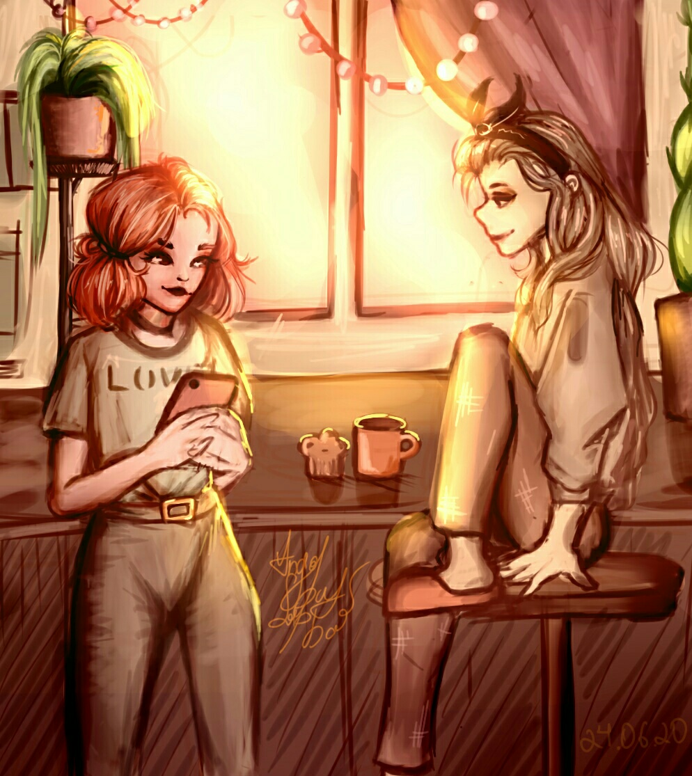 Милый светлый рисунок кухни, освещенной утренним солнцем.