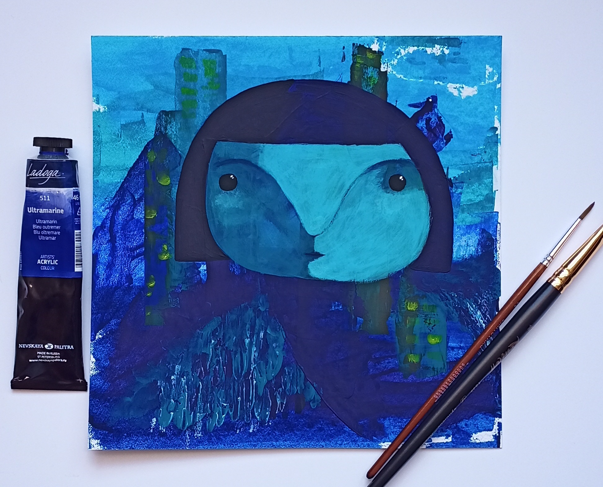 Работа из серии Blue Girls. Бумага, акрил.