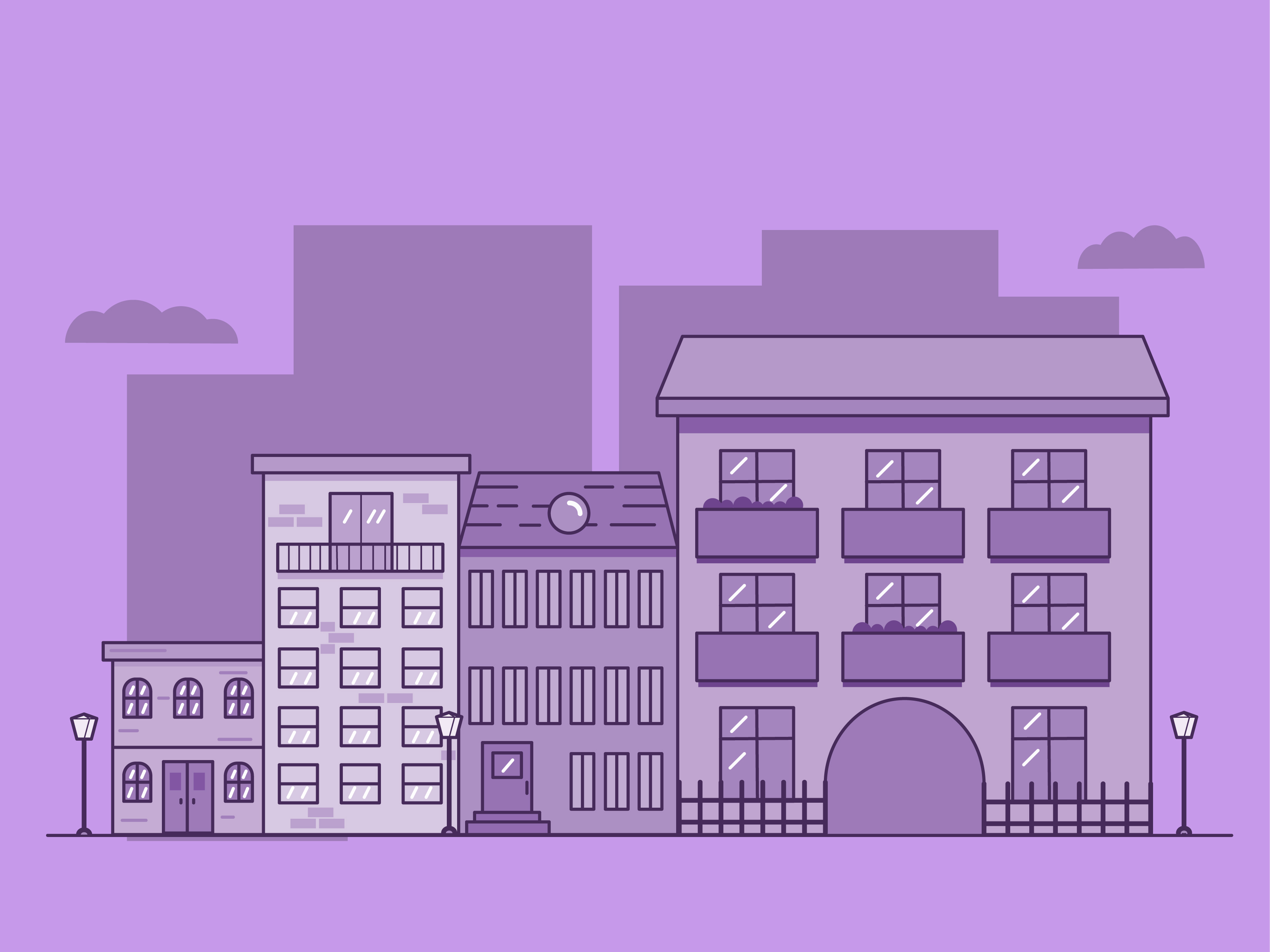 иллюстрация городского пейзажа хорошо подойдет для заставки в приложении