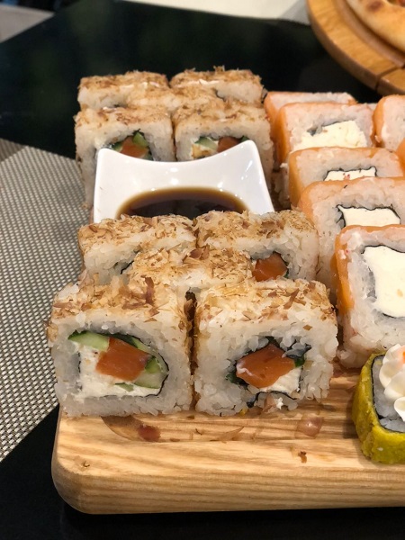 Одно из важнейших преимуществ этого заведения – обширное меню, где для заказчиков вкуснейшая пицца всевозможных вариантов и удивительные суши. Без исключения все блюда в меню приготавливаются из свежайших компонентов лучшими поварами, все они на высшем уровне владеют искусством приготовления популярных блюд итальянской и японской кухни. А это становится гарантией для заказчиков, что доставляемая еда подарит настоящее удовольствие, вне зависимости от места и времени ее потребления.