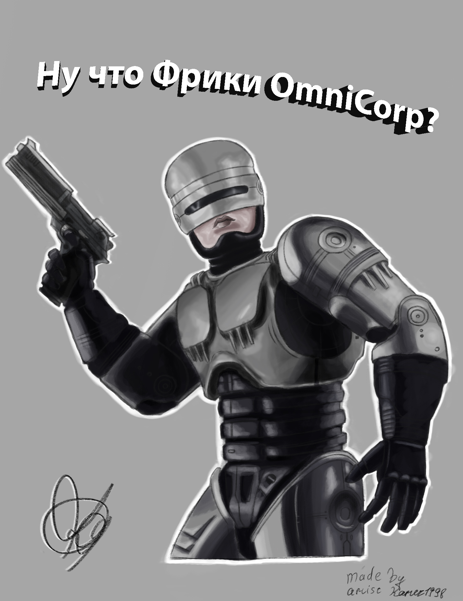 Решил нарисовать робокопа, после ремонта граф. планшета получилось неплохо после 2-3 месяцев застоя без фотошопа.