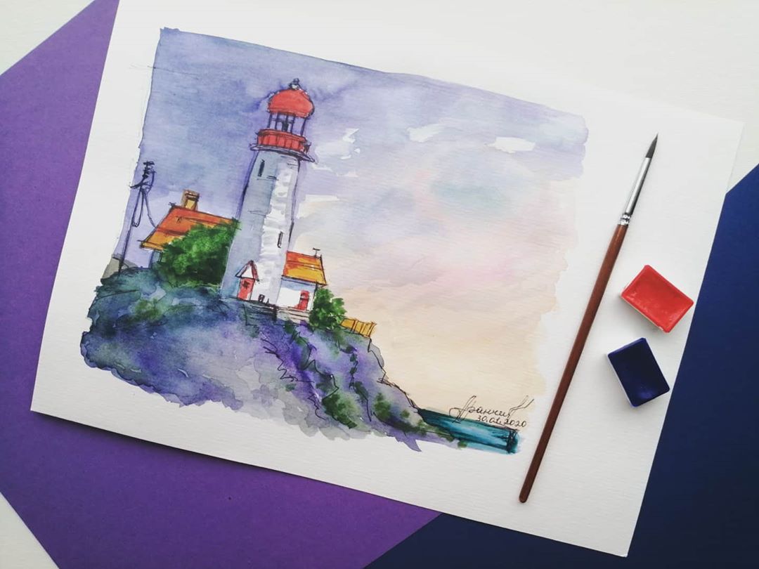 Маяк, скетч, акварель Белые ночи
