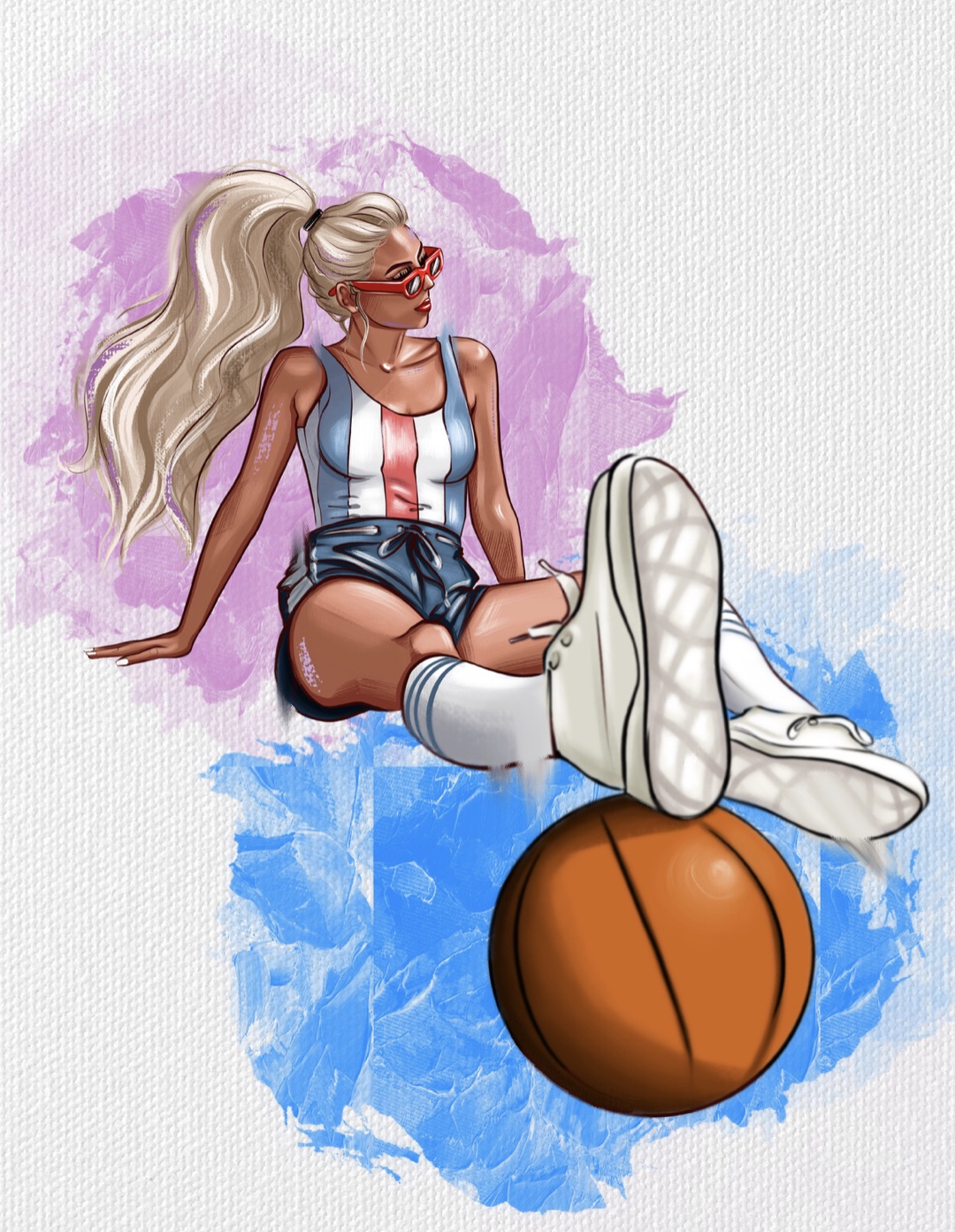 Работа выполнена в смешении стилей Масло и подходит для рекламы спортивной одежды, аксессуаров, а так же как логотип спортивного магазина.