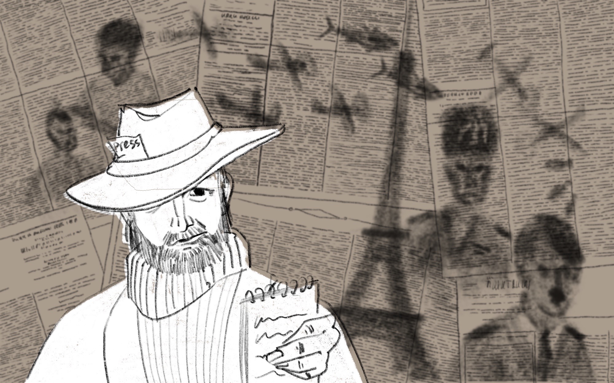 Иллюстрация для журнала discours.io для статьи про журналистскую деятельность Хемингуэя.