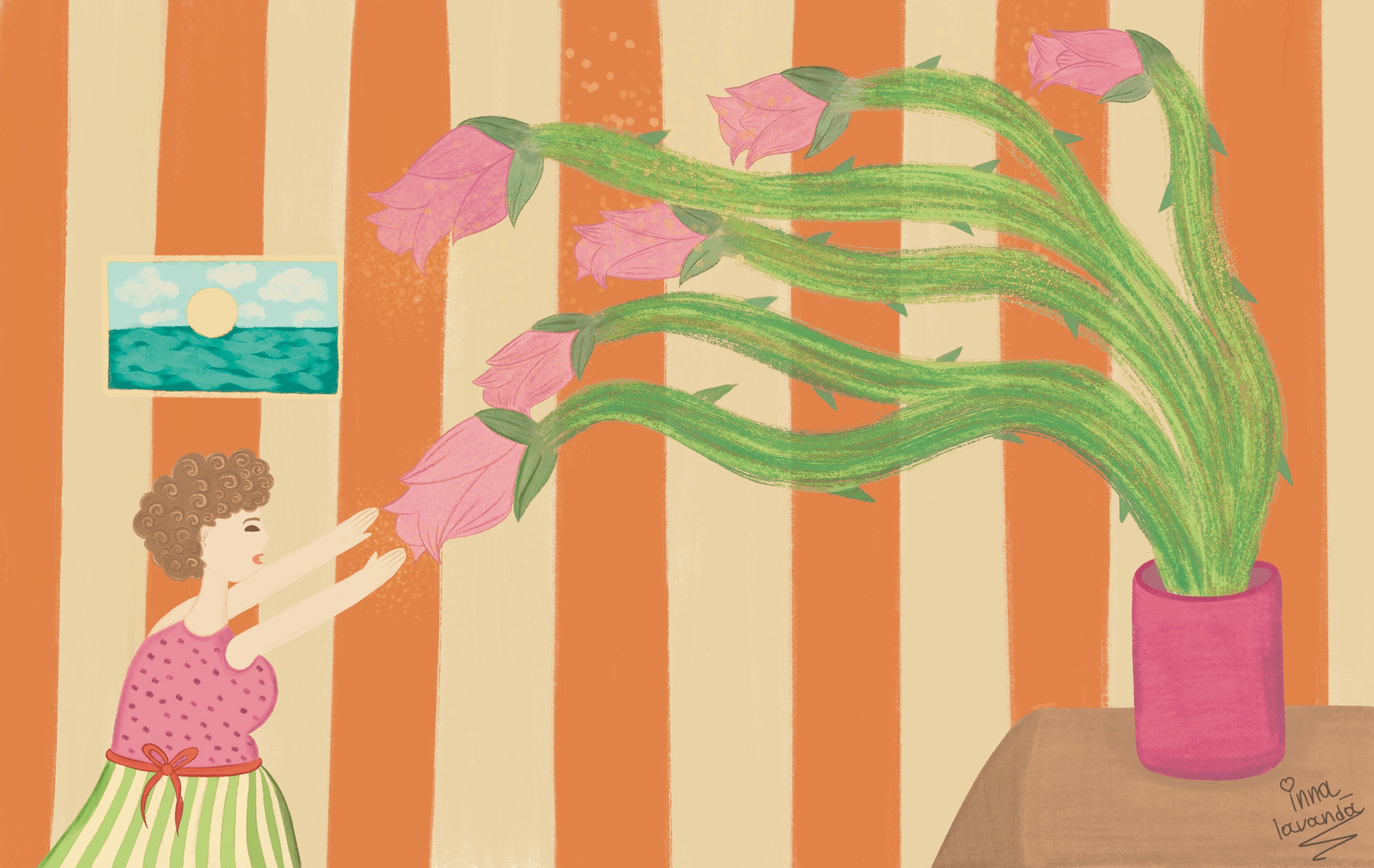История в картинке о дама,которая очень сильно любит цветы