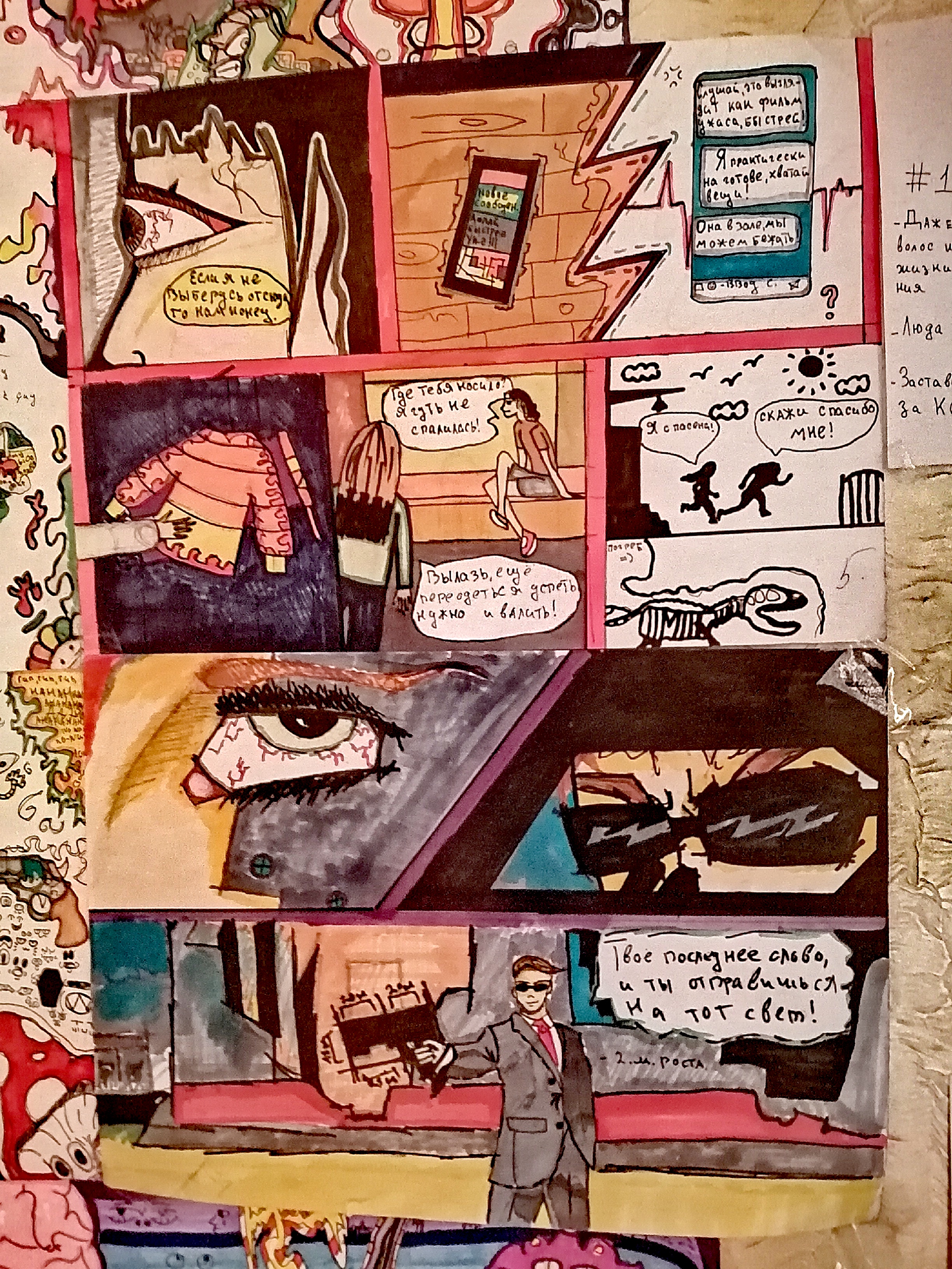 Первый рисунок это случай ищ жизни, а второй - сон и сцена из комикса.