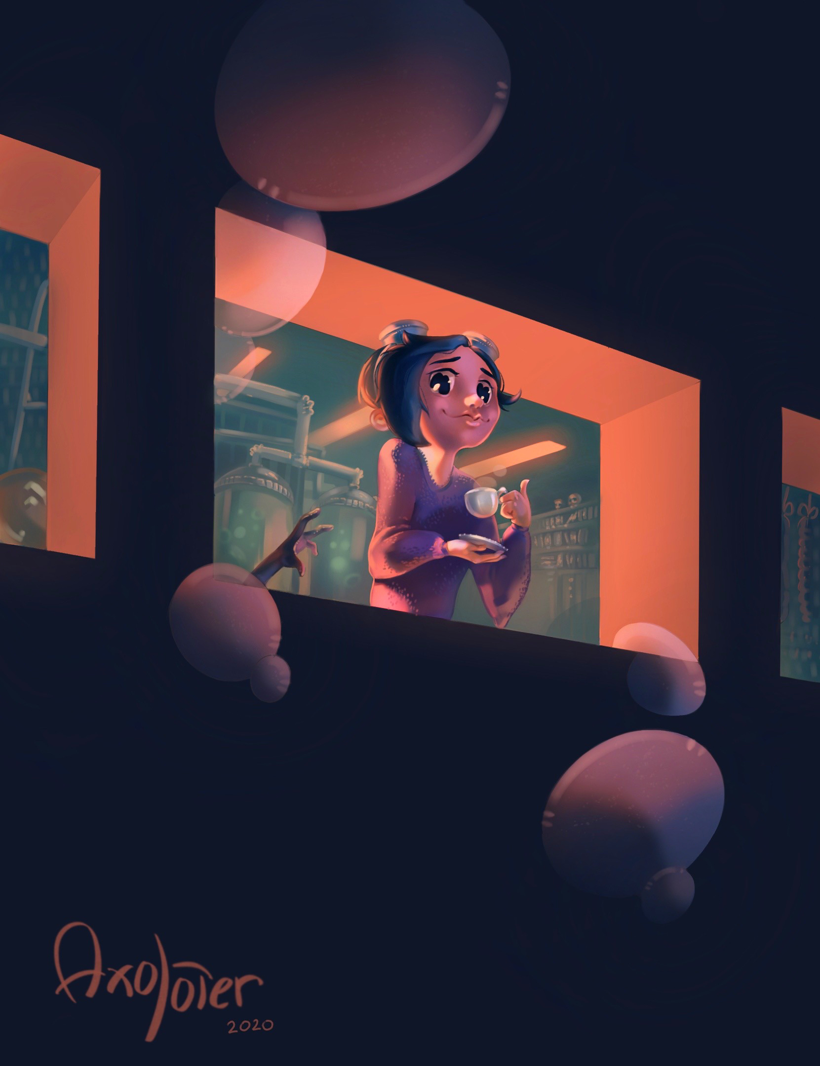 Милая девушка пьёт чай у окна...