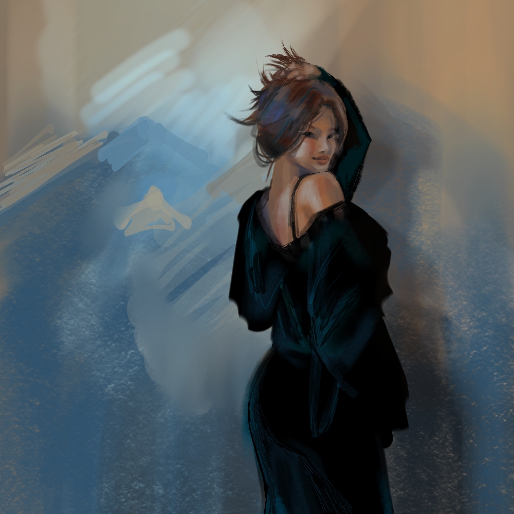 Одна из работ - экспериментов. Пробовала рисовать разными кистями
