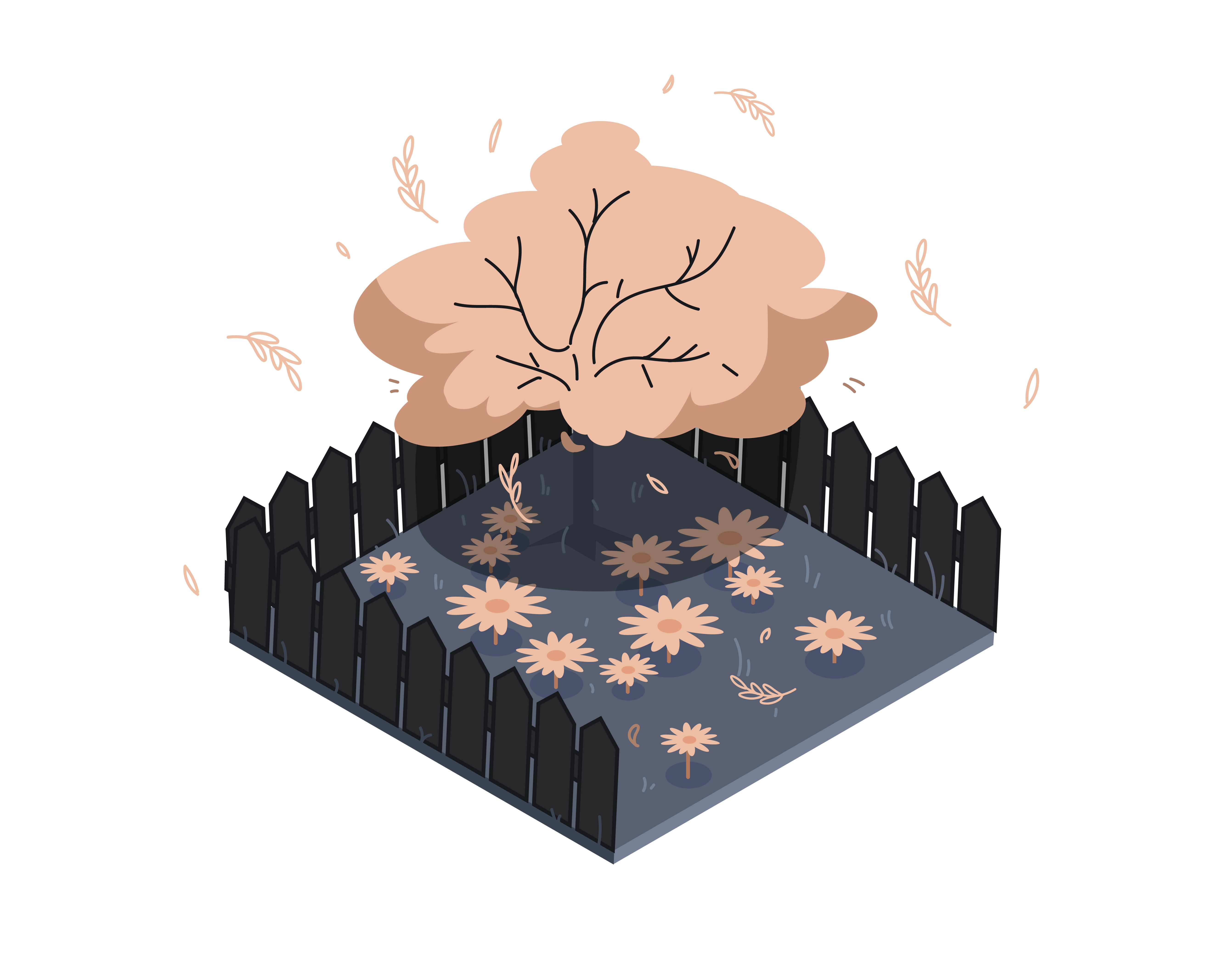 Это заказная иллюстрация сада в изометрии