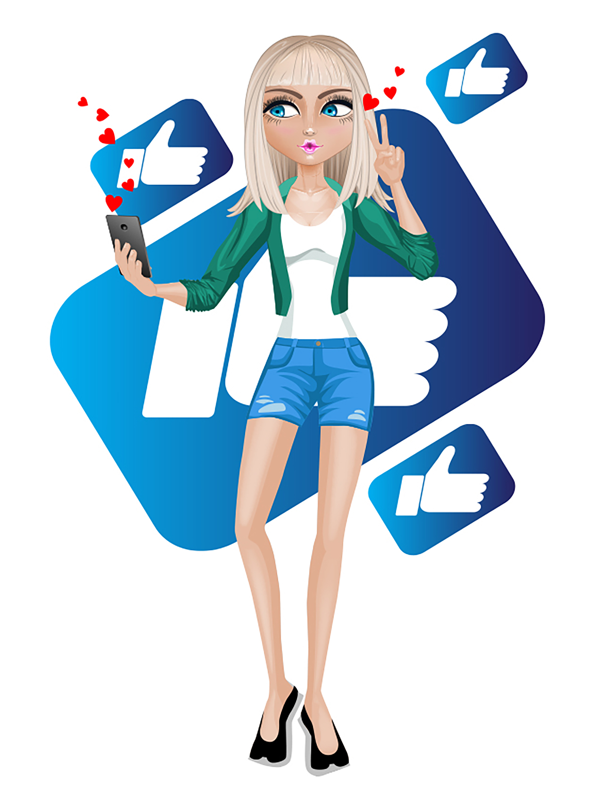 Молодая девушка увлеченная социальными сетями и лайками
