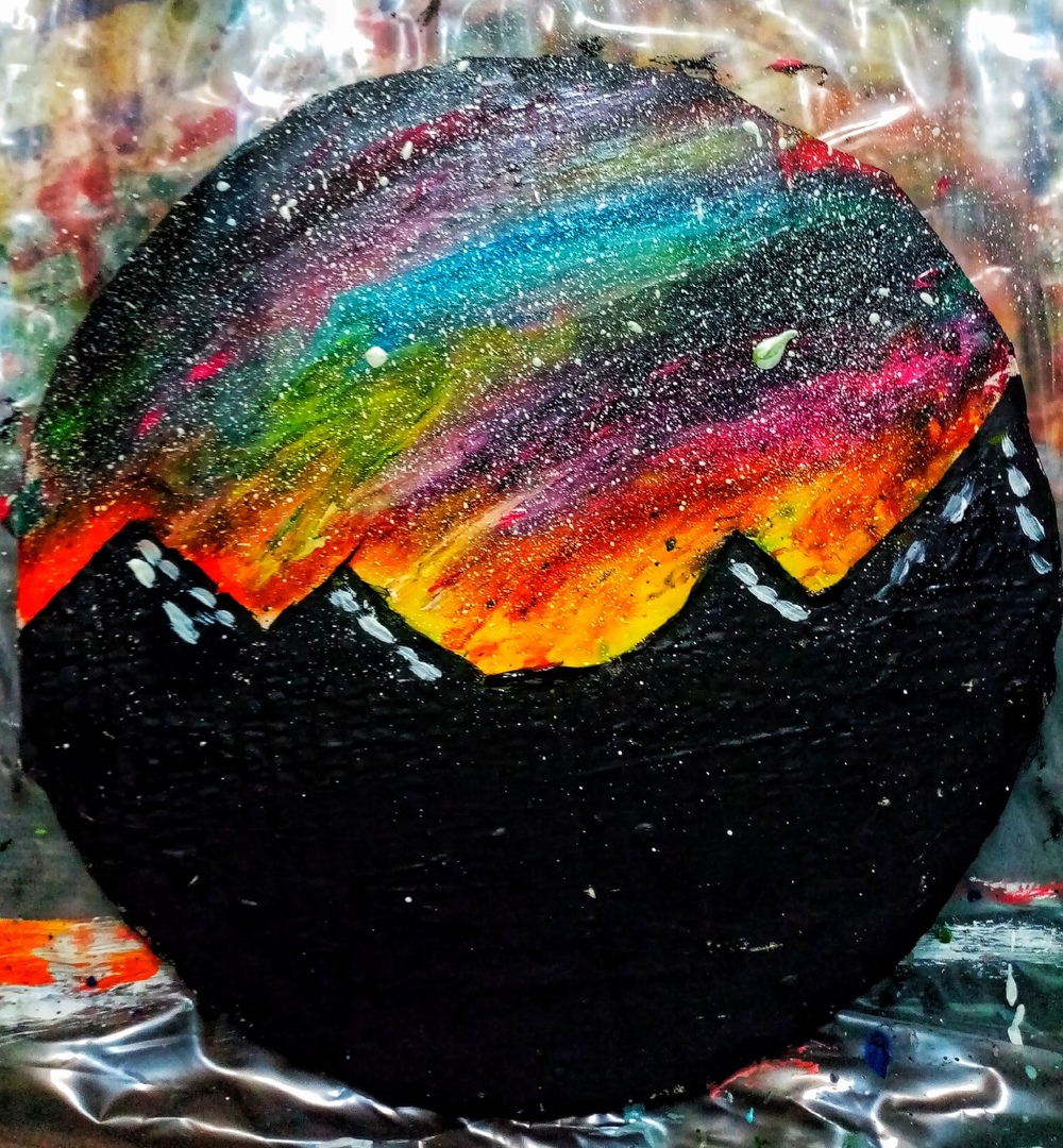 Звездное космическое небо, черные горы