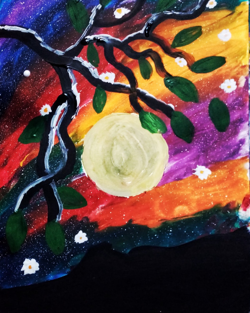 Звездная ночь, тишина, и только легкий ветерок уносит цветочки с дерева...