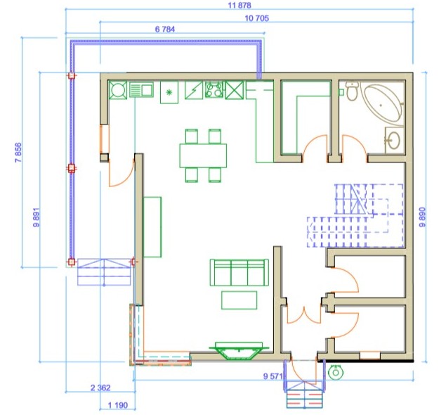 план 1-ого этажа 2х этажного коттеджа