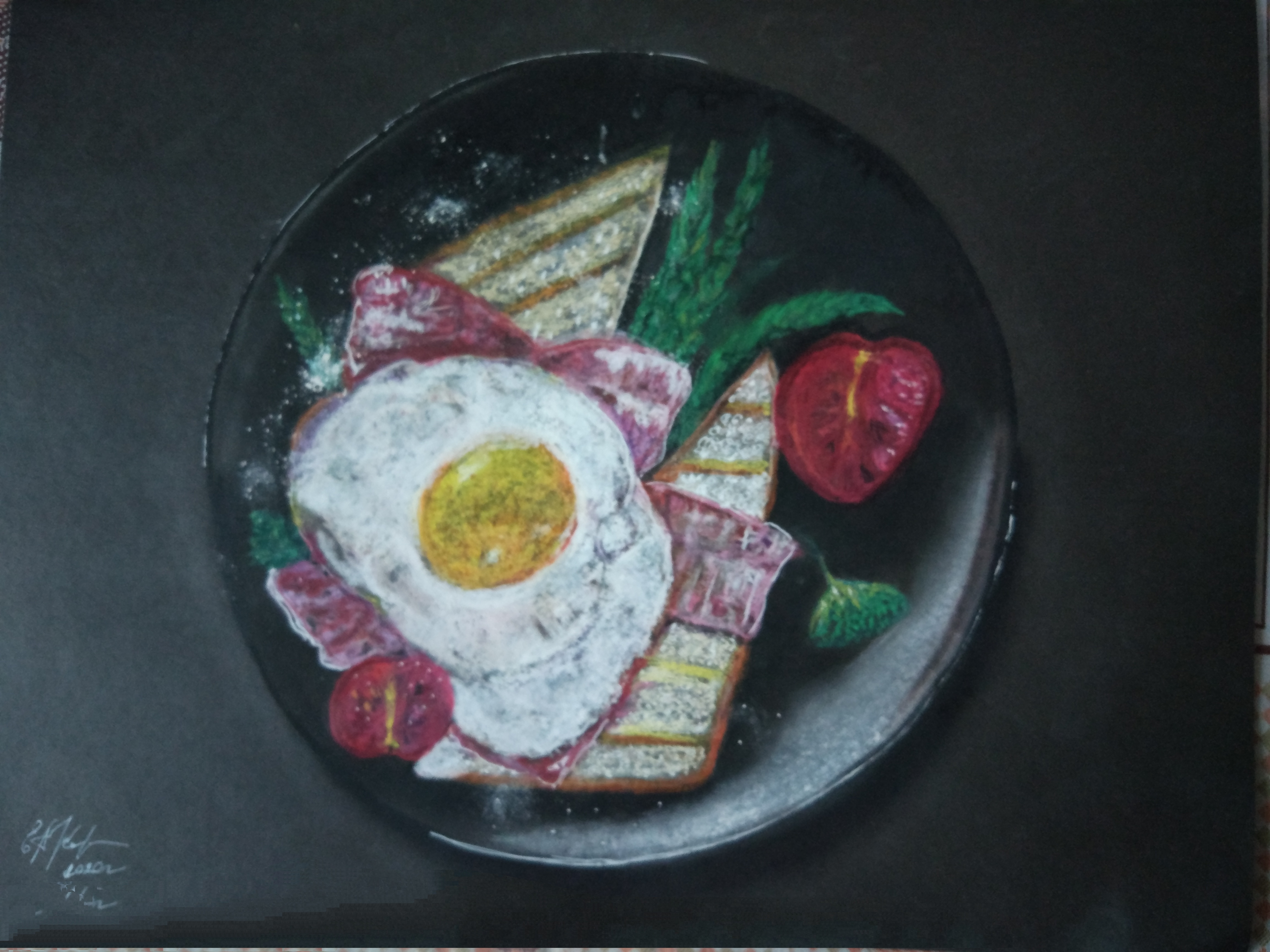 Скетч с едой яисница с беконом и помидором
