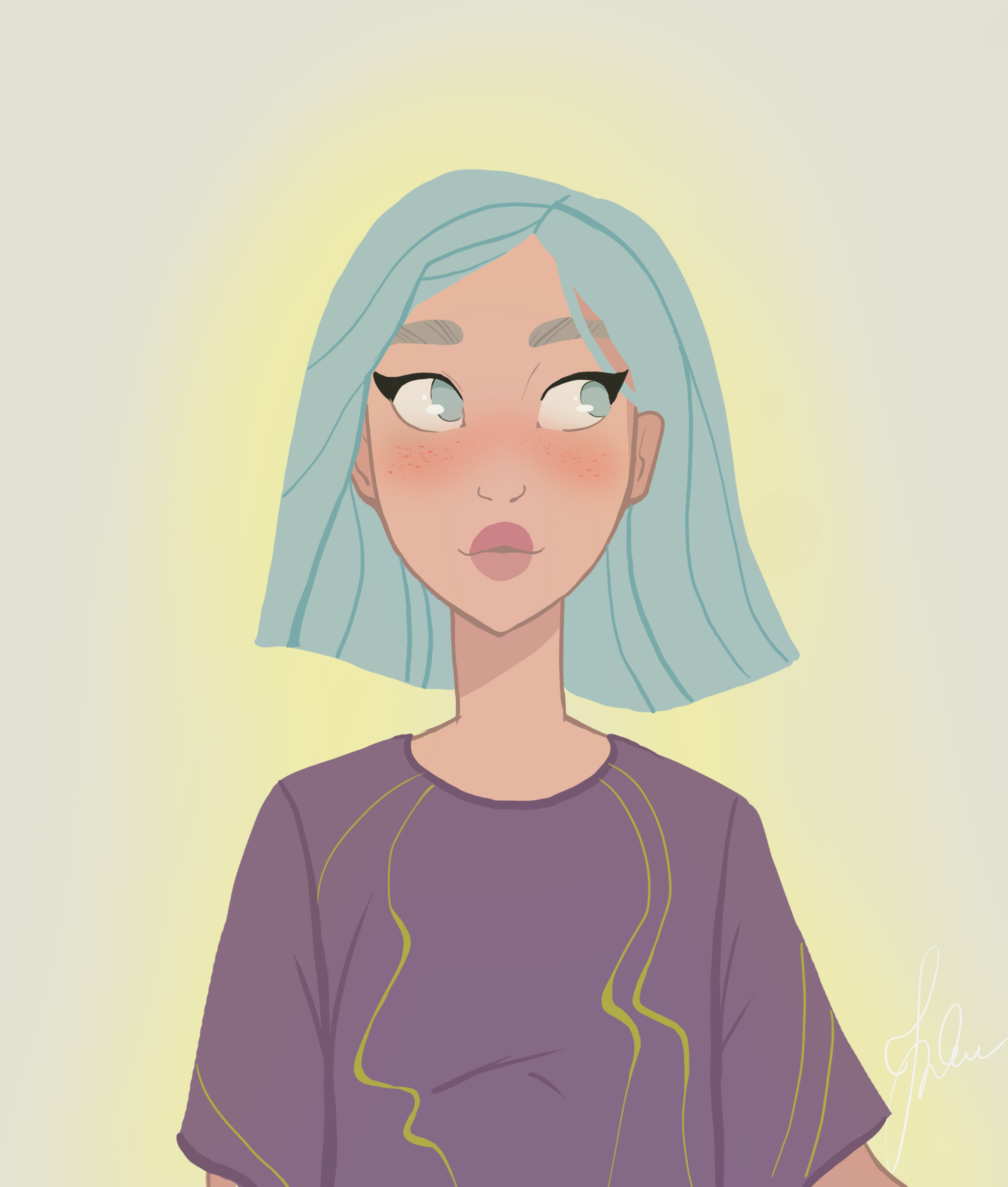 Задумчивая девочка с голубым каре