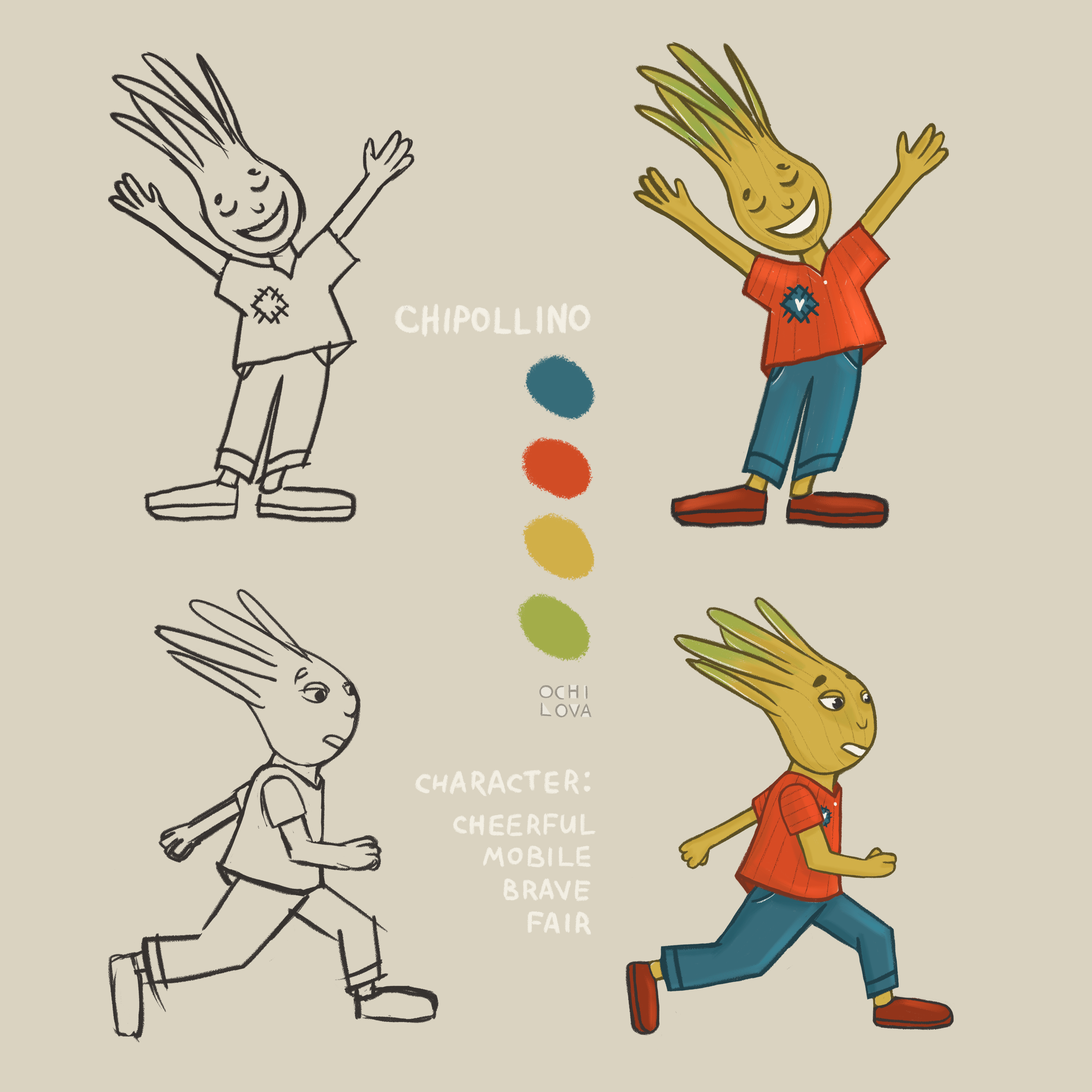 Скетч персонажа, цветовая палитра и конечный вариант