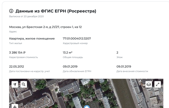 В онлайн-отчёт о проверке недвижимости от https://reestro.ru включены следующие данные:
