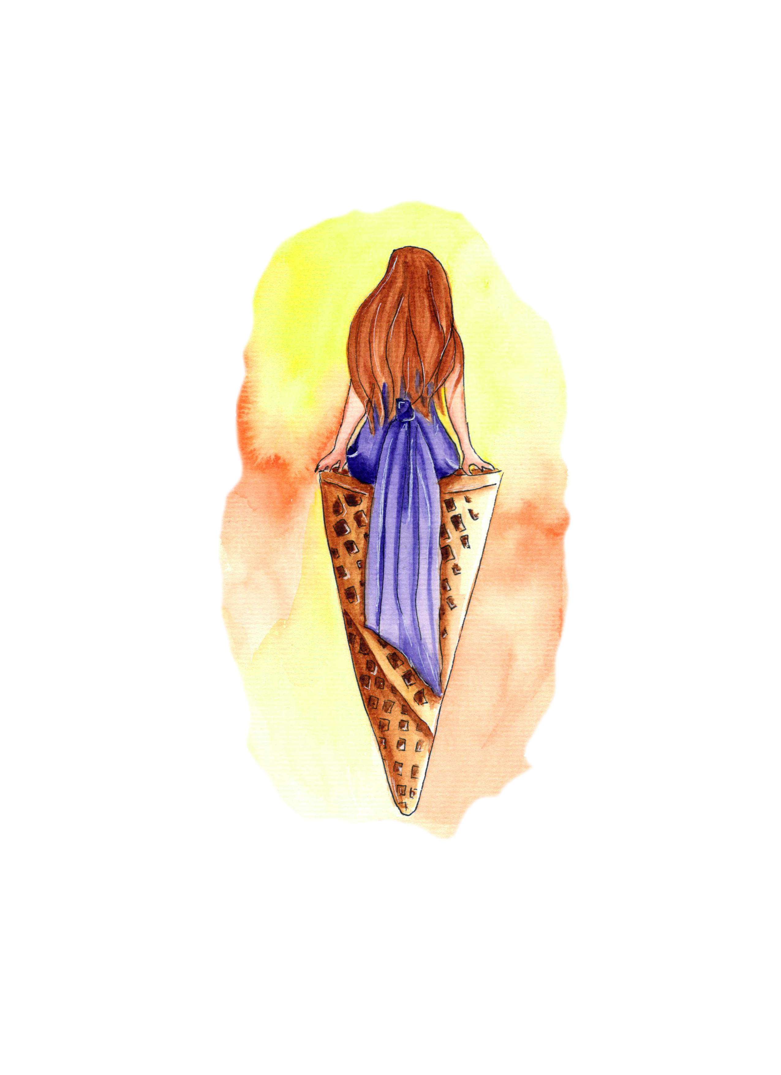 Акварельная иллюстрация на белом фоне, летняя иллюстрация девушка смотрящая на закат