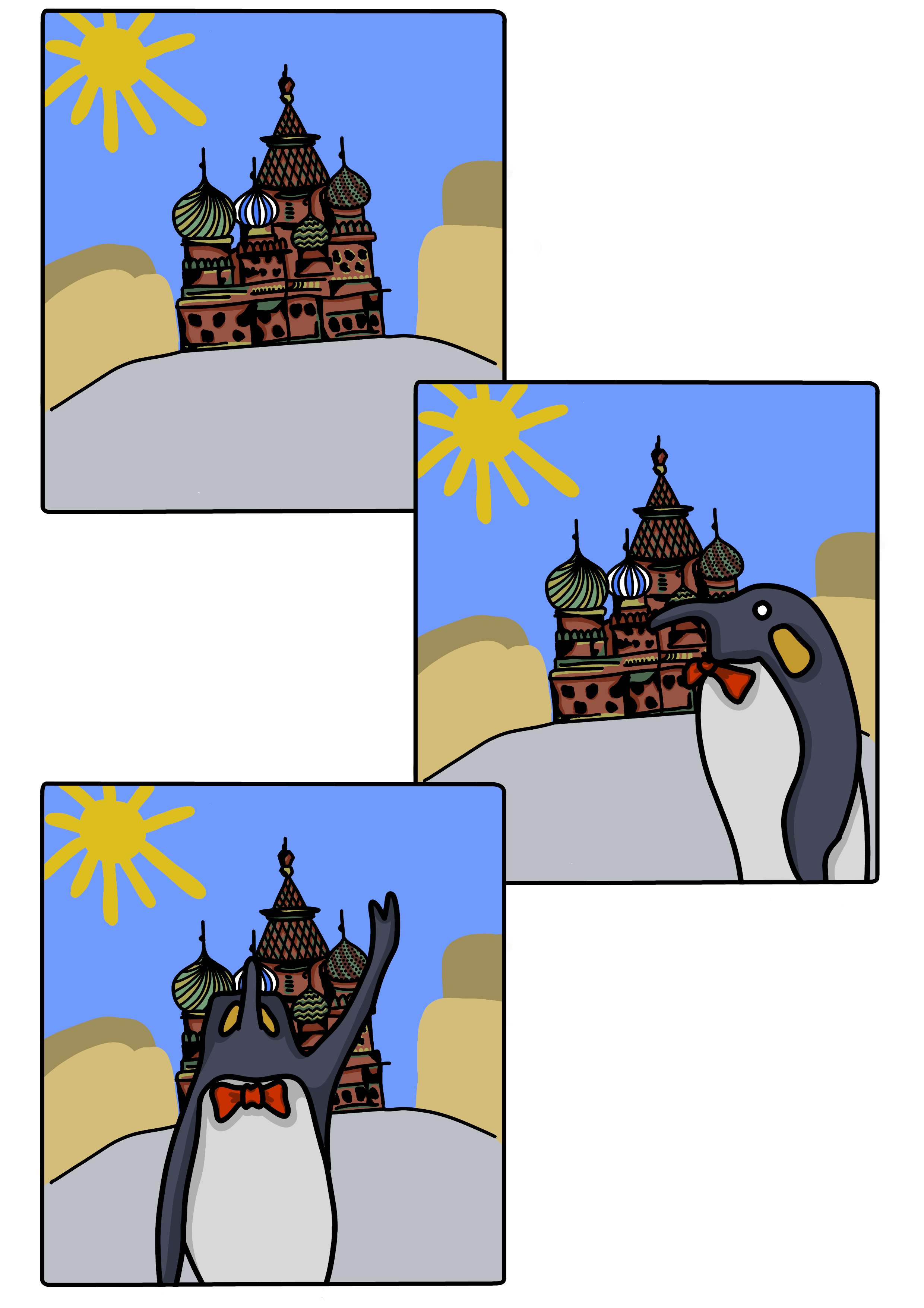Пингвин-турист. Пустая площадь, изоляция.