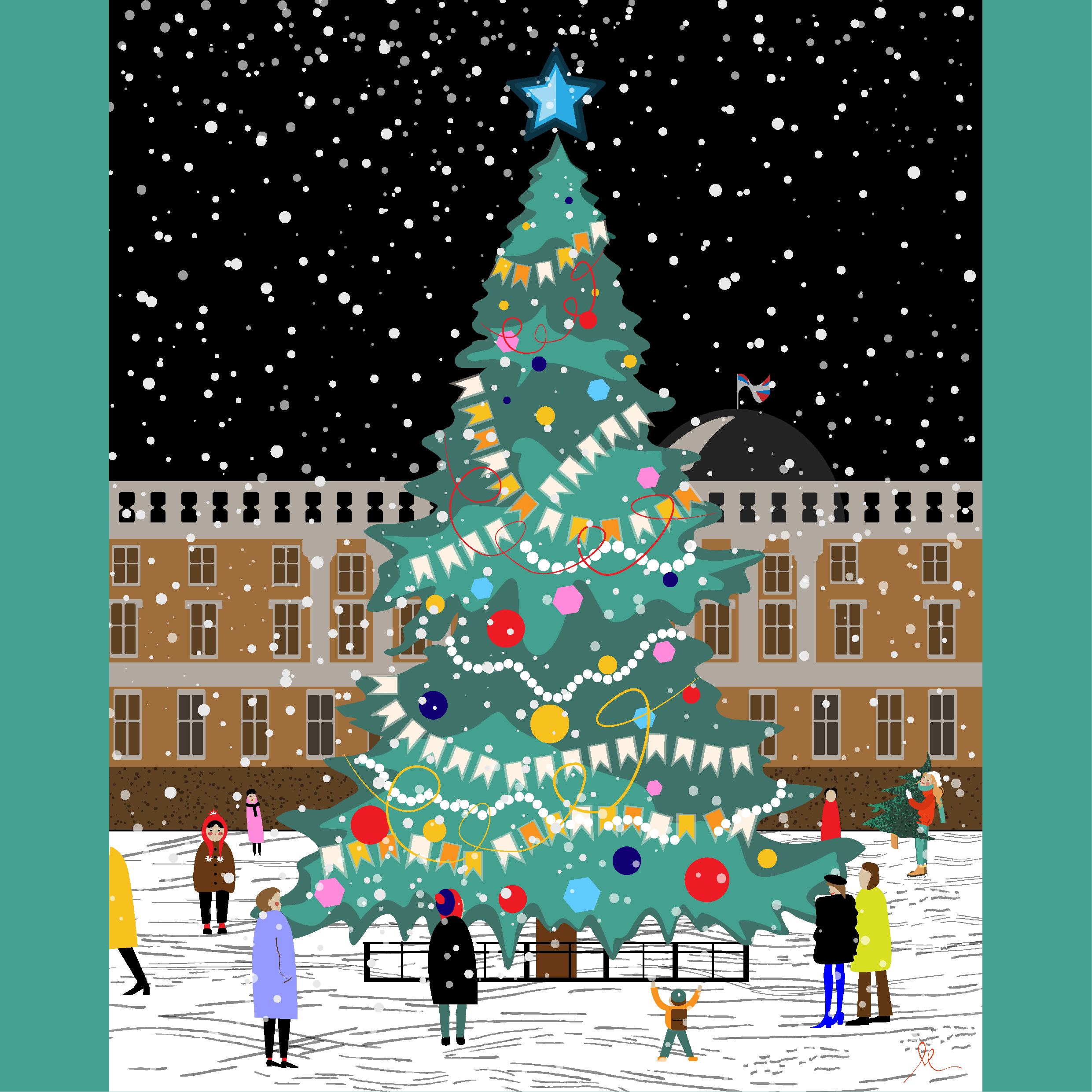 На иллюстрацию меня вдохновила потрясающая живая елка, поставленная на Дворцовую Площадь