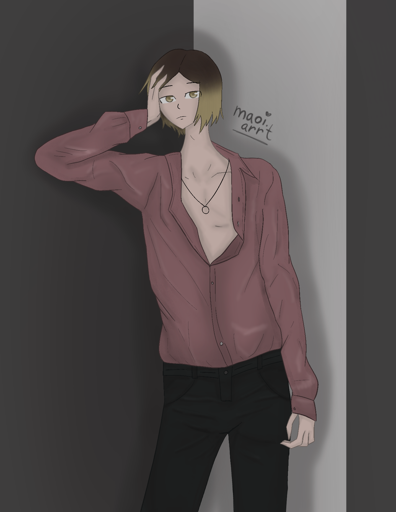 Иллюстрация с персонажем из известного аниме "Haikyuu"(Волейбол). Имя персонажа — Кенма. Сделана 15 мая.