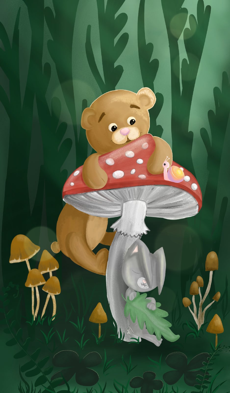 Что Зайка не прочь поспать под грибом, он знает что его будет оберегать его друг Мишка.