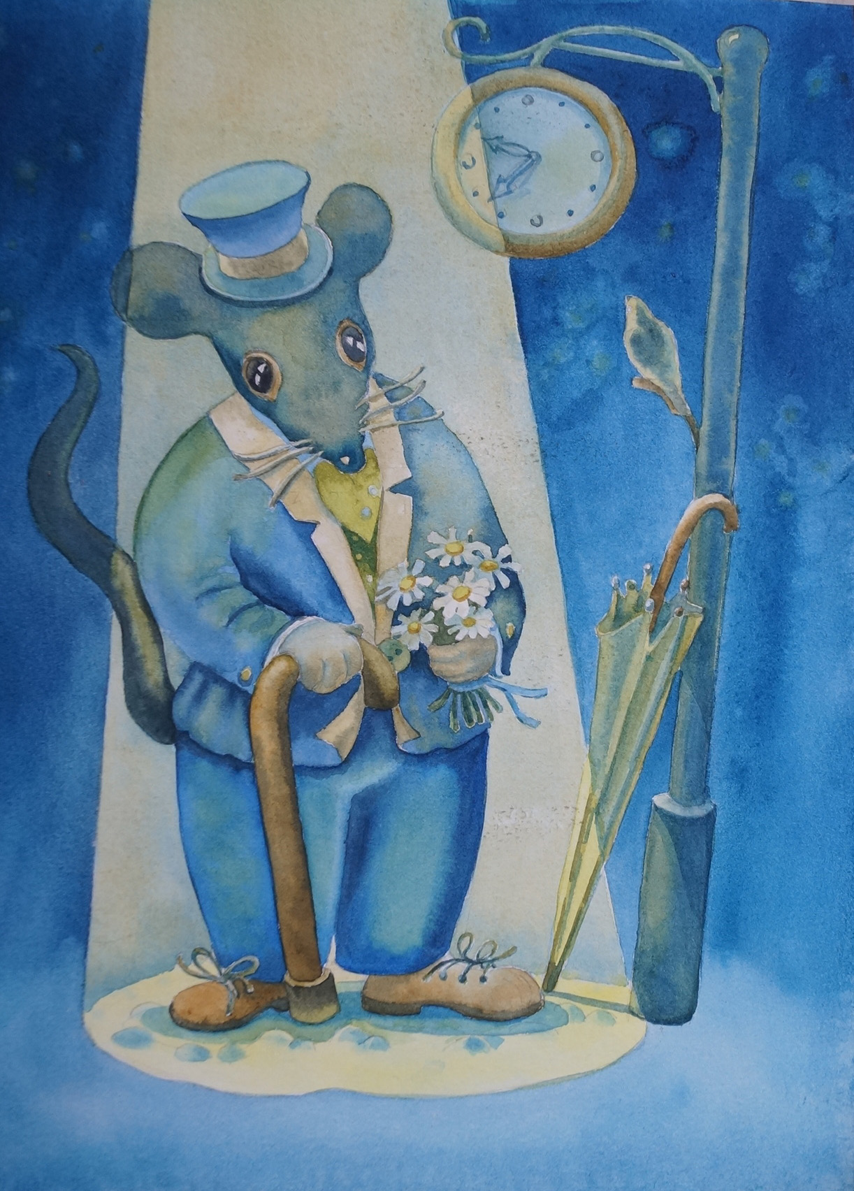 В ожидание своей возлюбленной, но время позднее, а ее все нет.