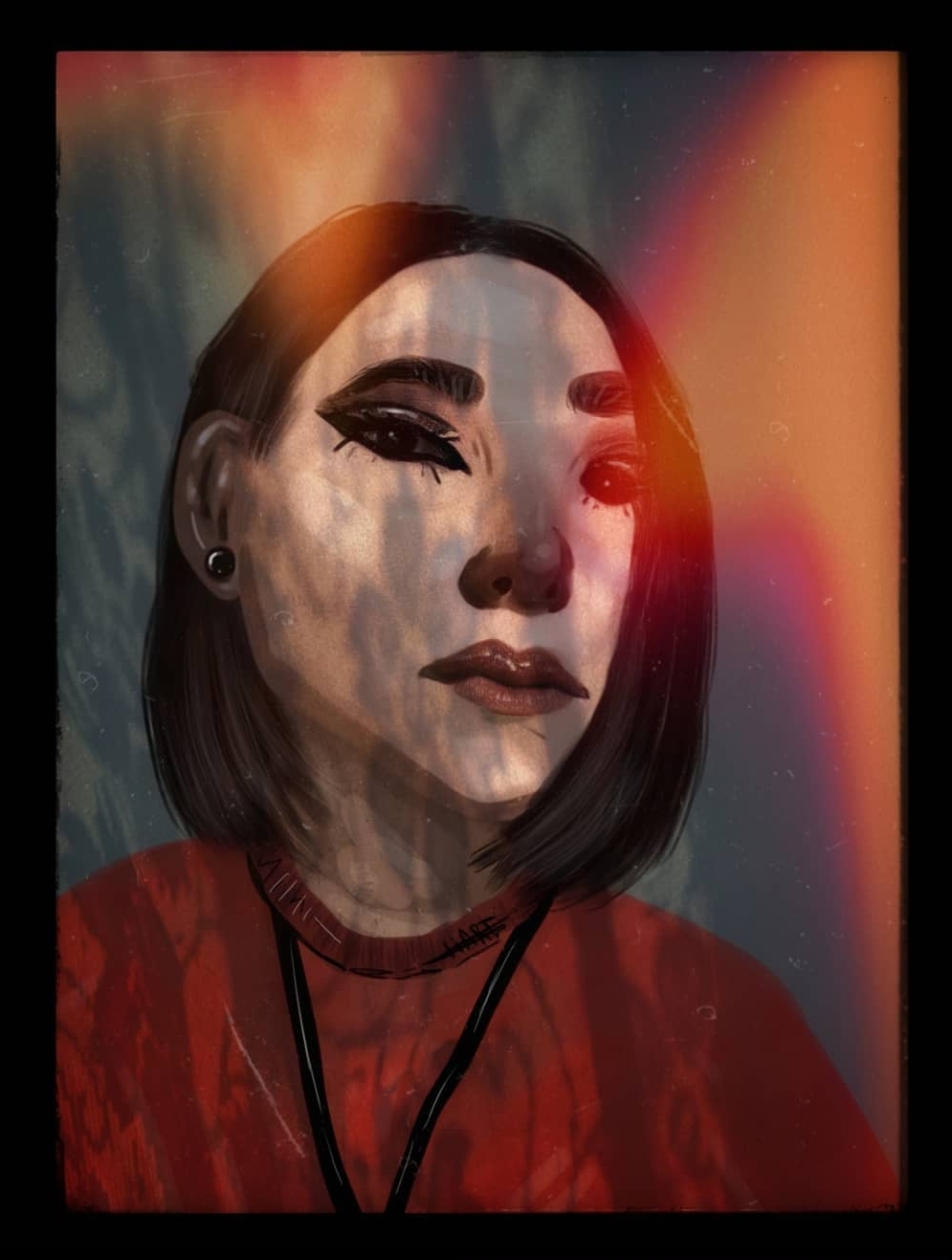Девушка у окна, на которой отражается свет.