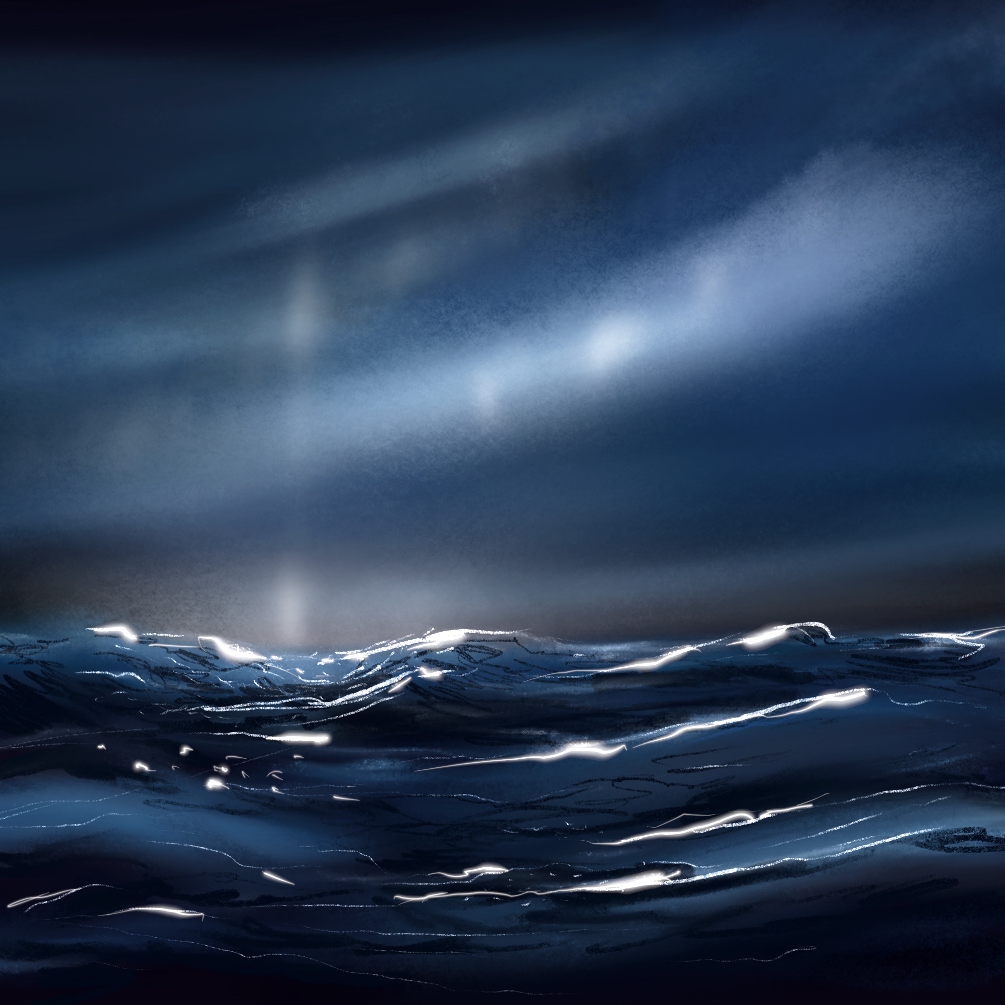 Вечернее море в свете Луны через облака