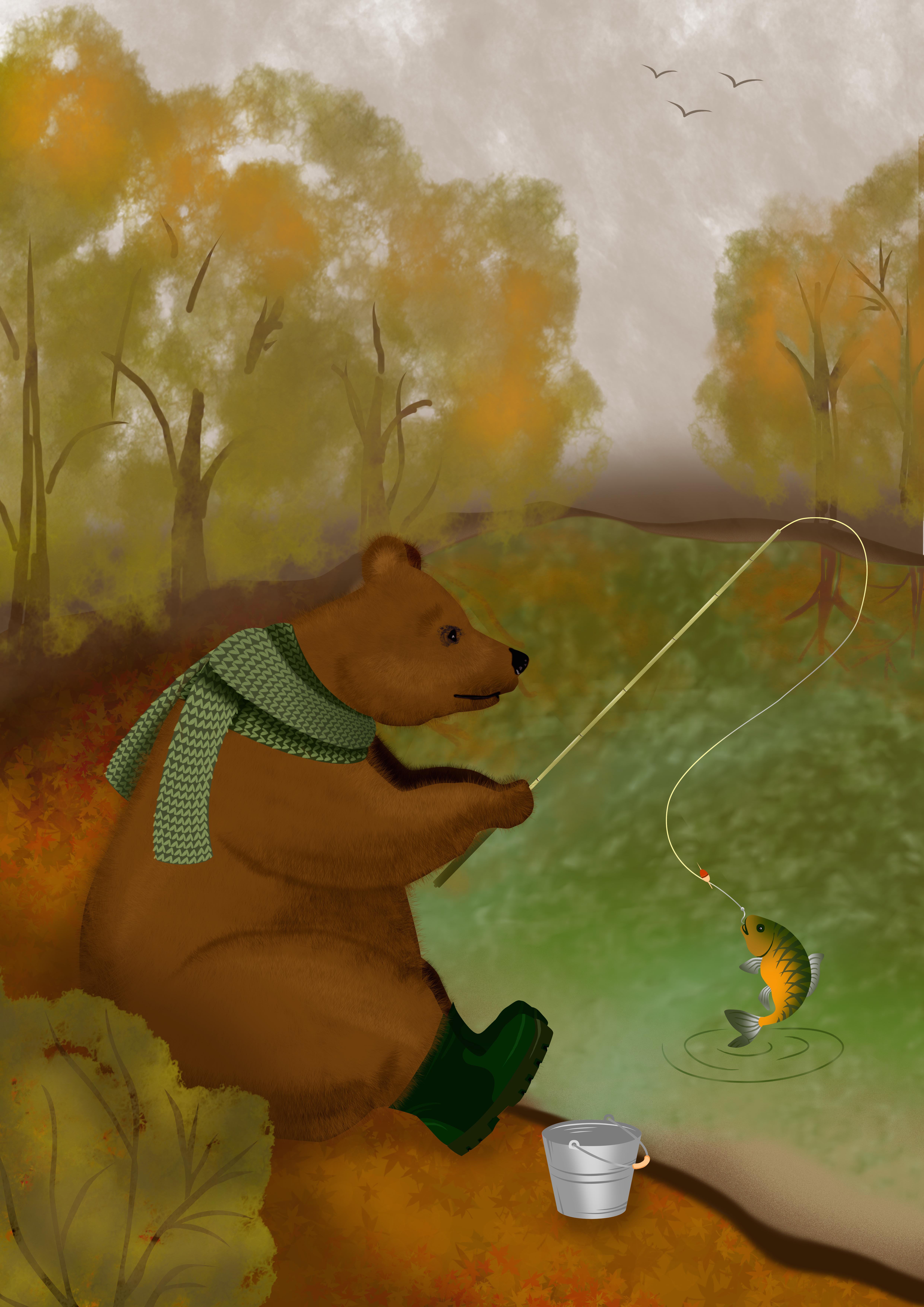 Плакат Осень из серии Времена года. Герой - медведь Мишка