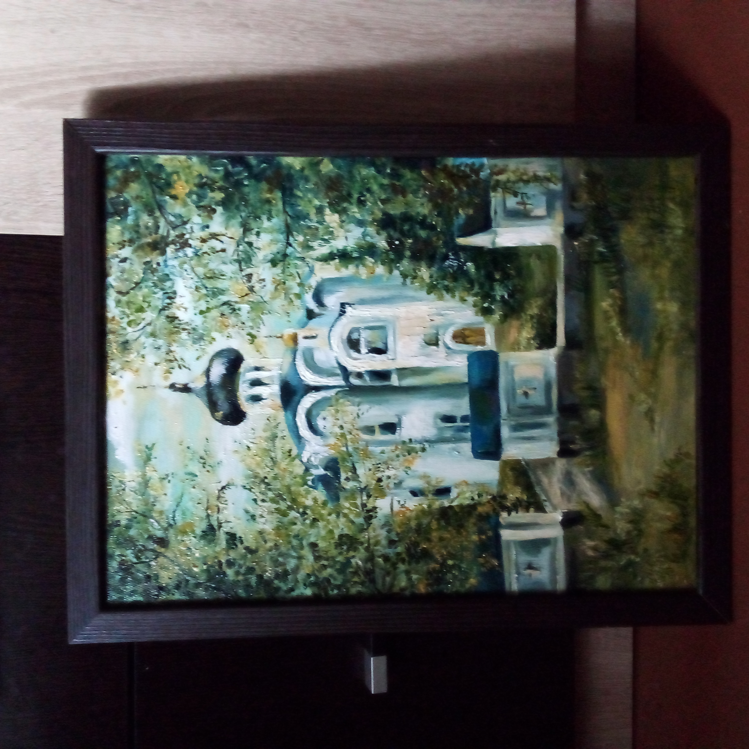 Храм из родного села.Воронежской обл.30/40.масло/холст.Оформлена в рамку и под лак.Свежая работа 2019год.