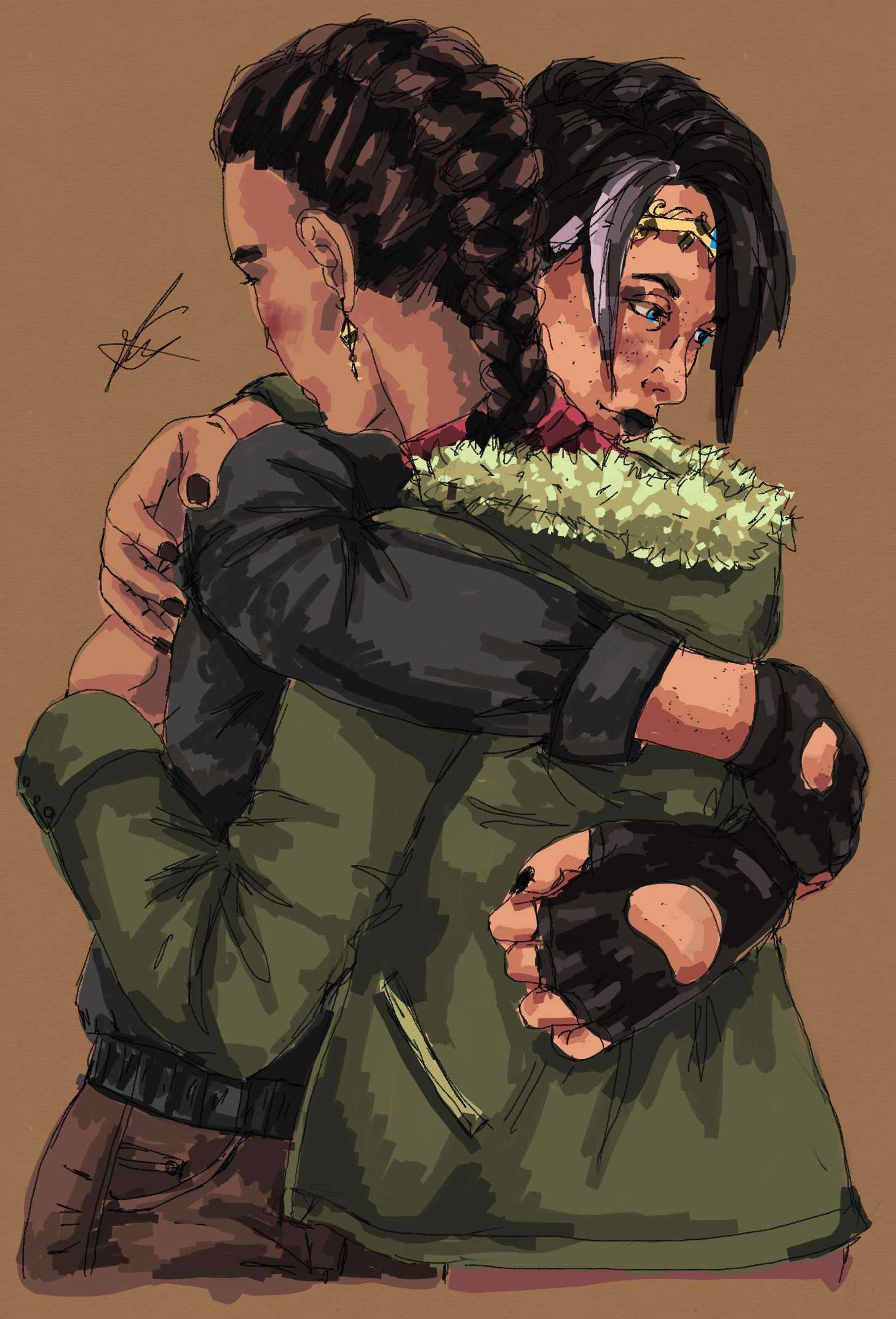 Один из моих любимых фанартов. Тут нарисованы две героини из серии книг "Герои Олимпа" Рика Риордана Рейна и талия.