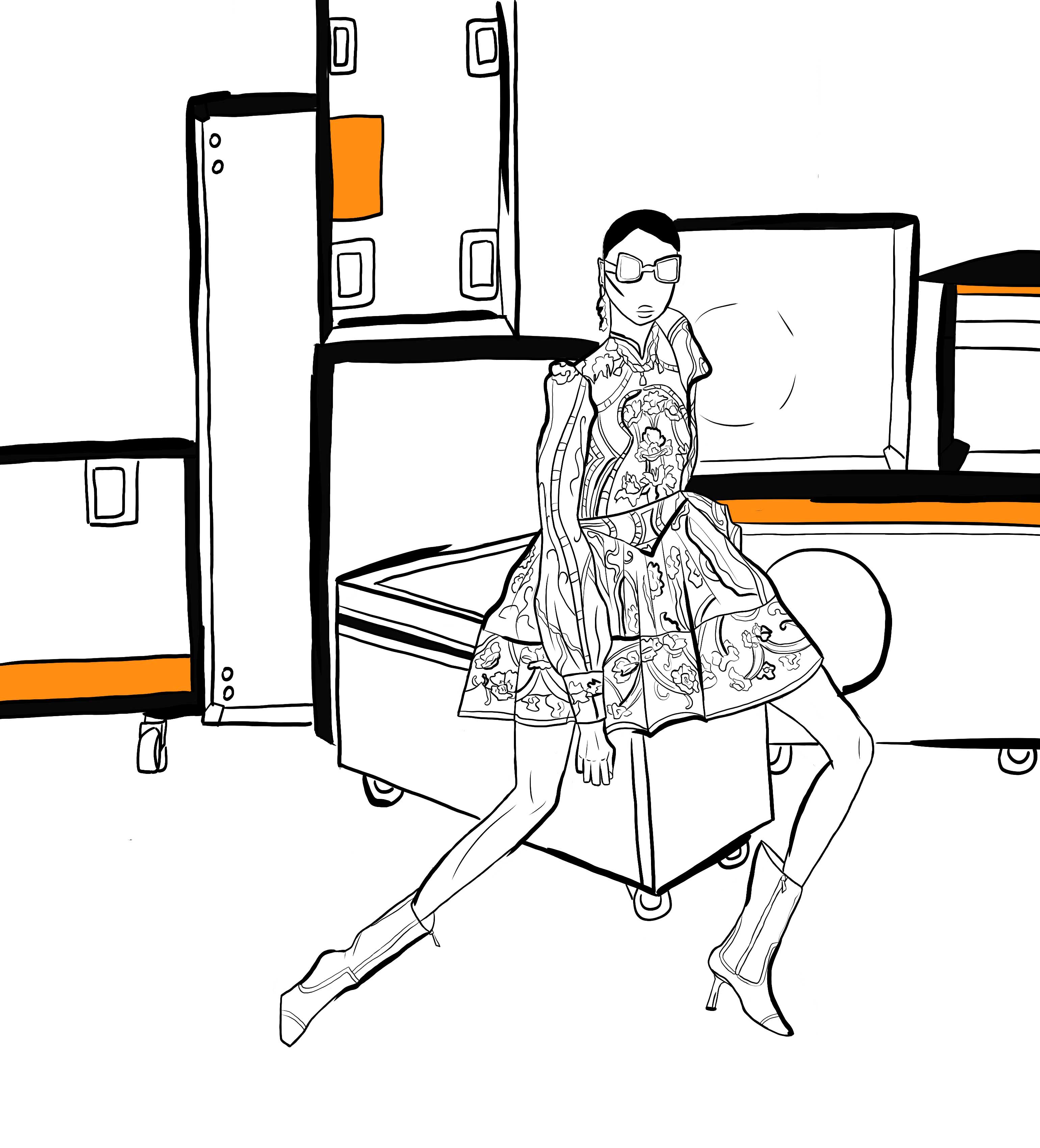 Девушка на бекстейдже, референс взят из коллекции бренда Zimmermann