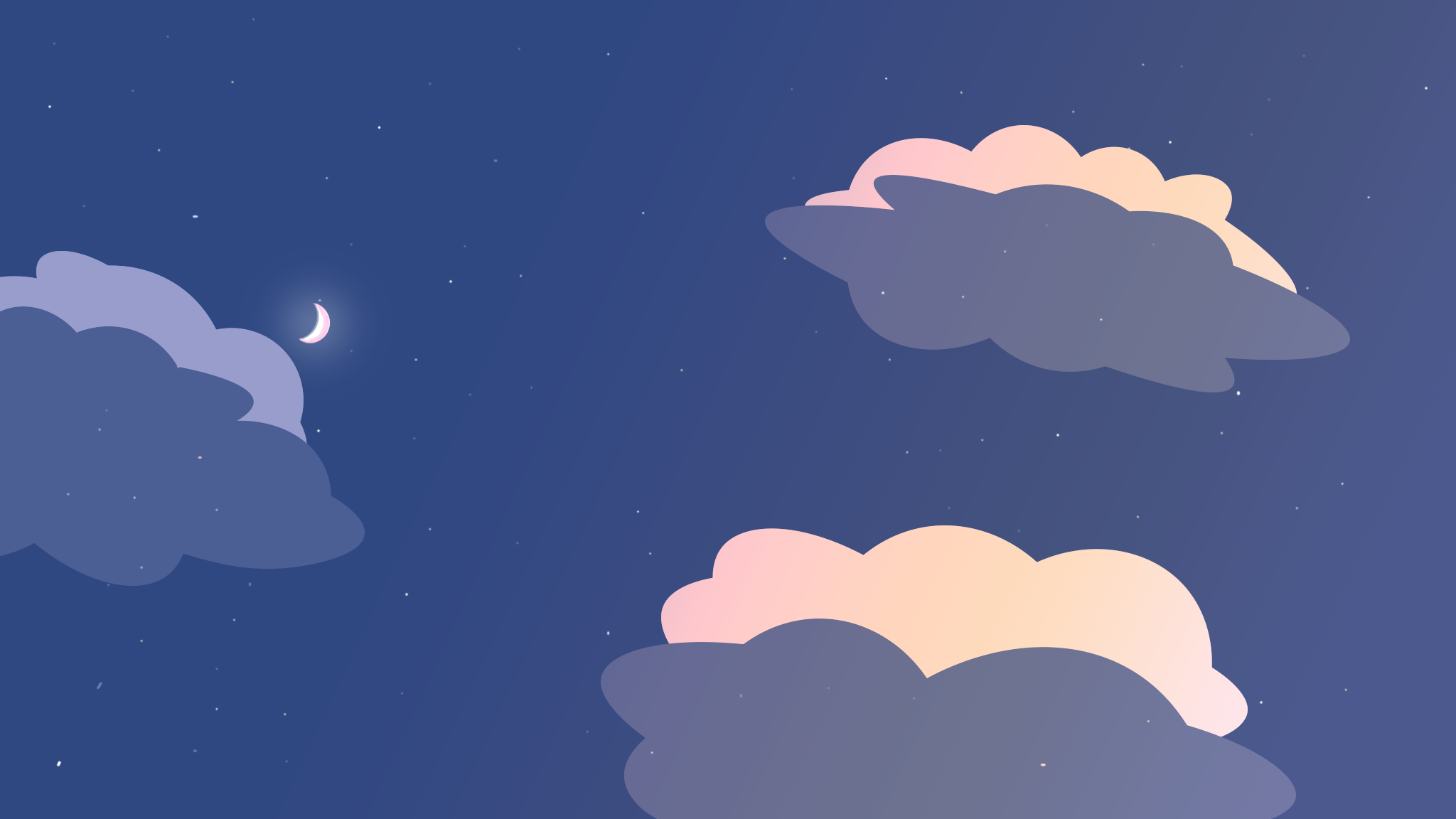 Небо со звёздами и облаками в предрассветный час. Изображение выполнено в векторной графике.