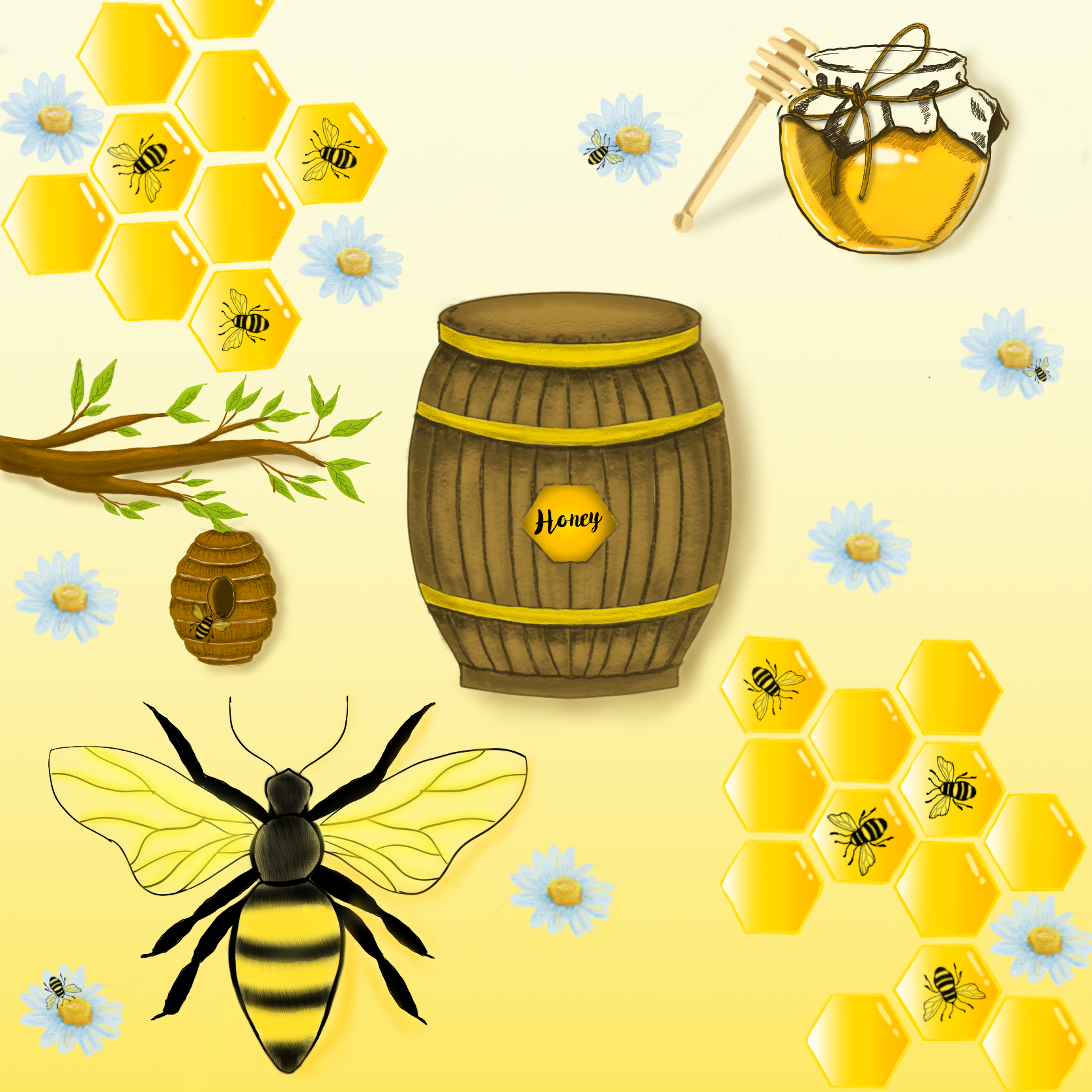 Стикерпак «Пчёлы и соты»