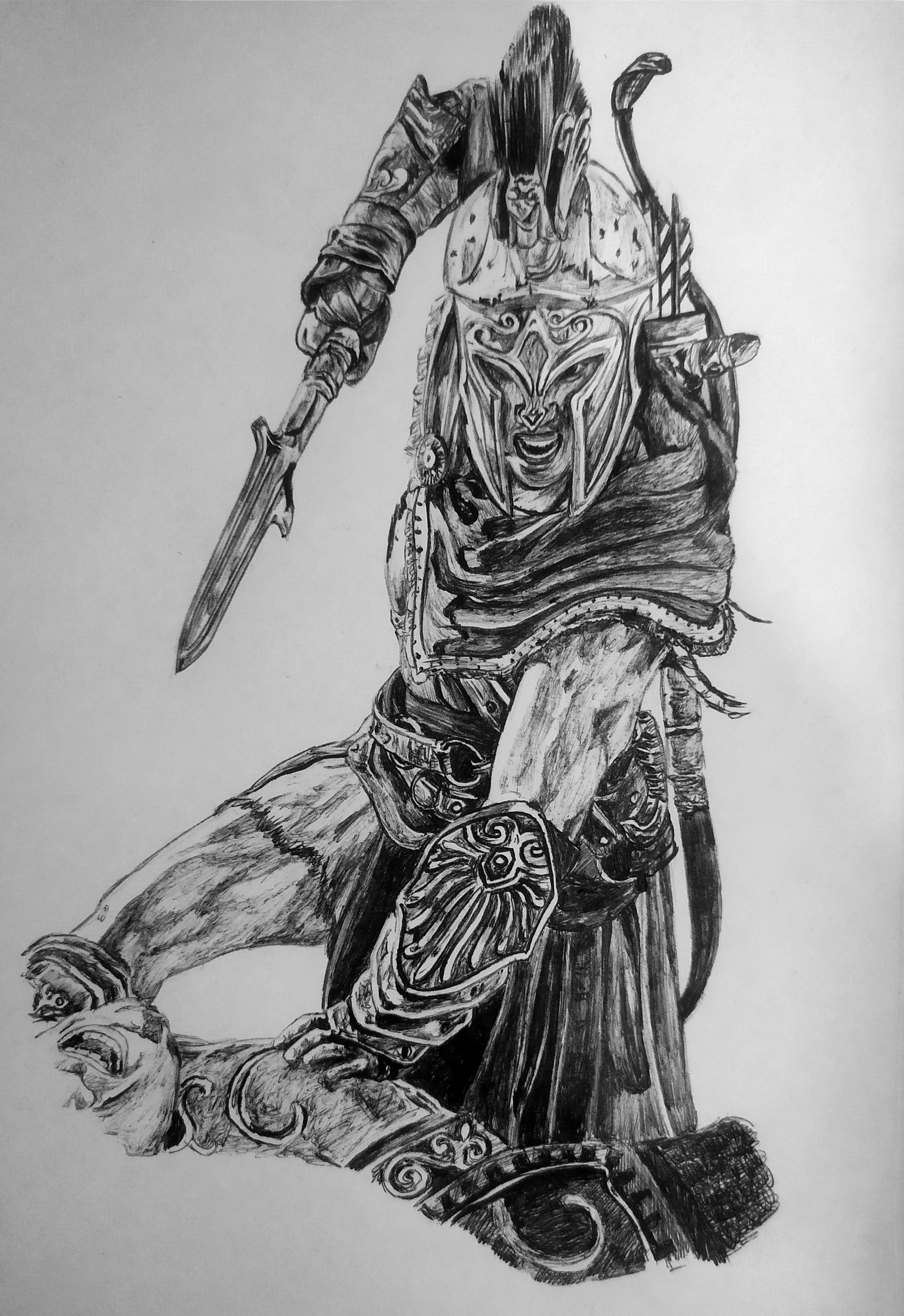 Спартанец. А5. Черная ручка. 6 часов работы