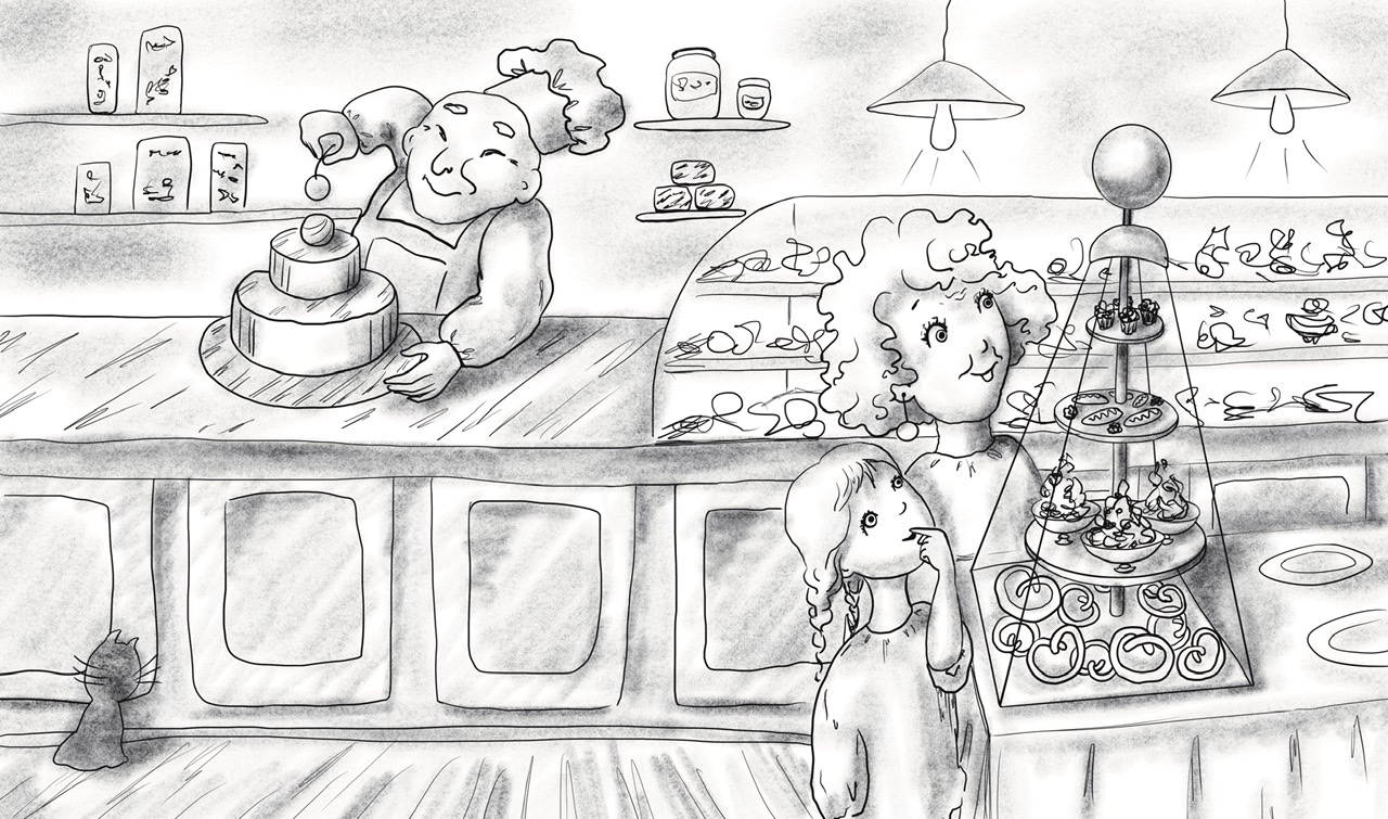 ЧБ эскиз иллюстрации к книжке «Когда бабушка стала маленькой»