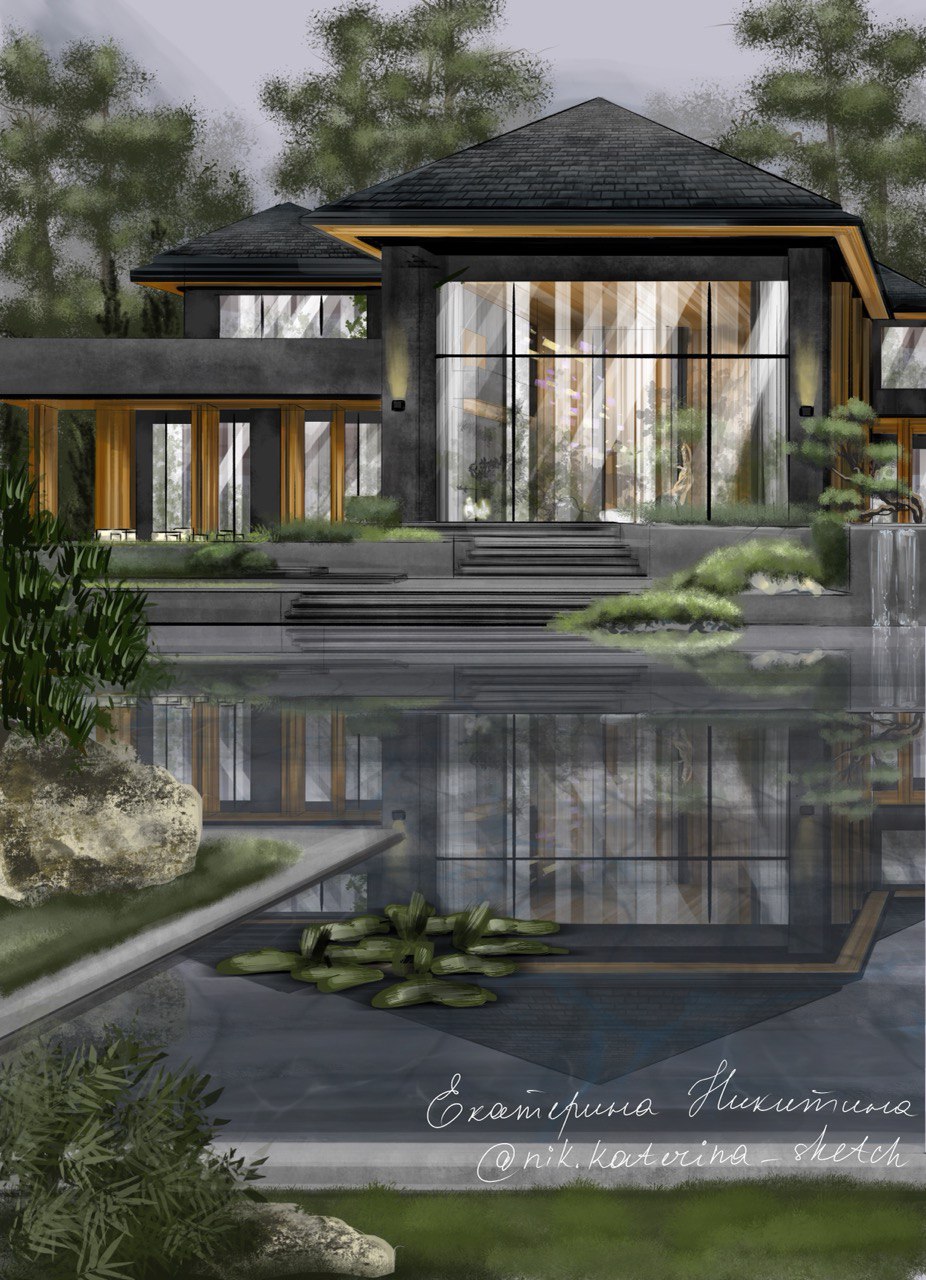 Скетч визуализация экстерьера загородного дома
