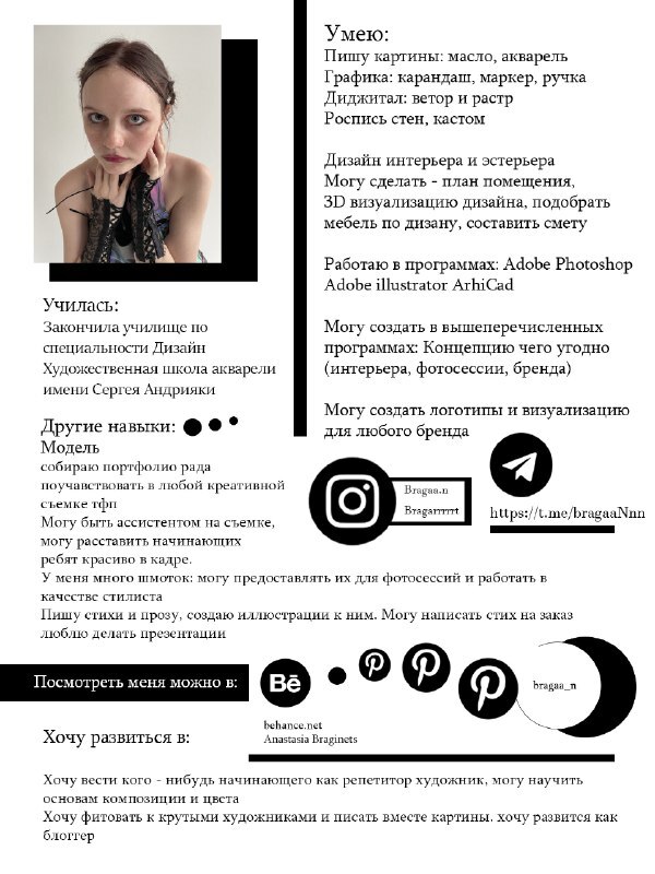 Мои навыки о сотрудничестве писать в телеграм, инстаграм bragaa.n